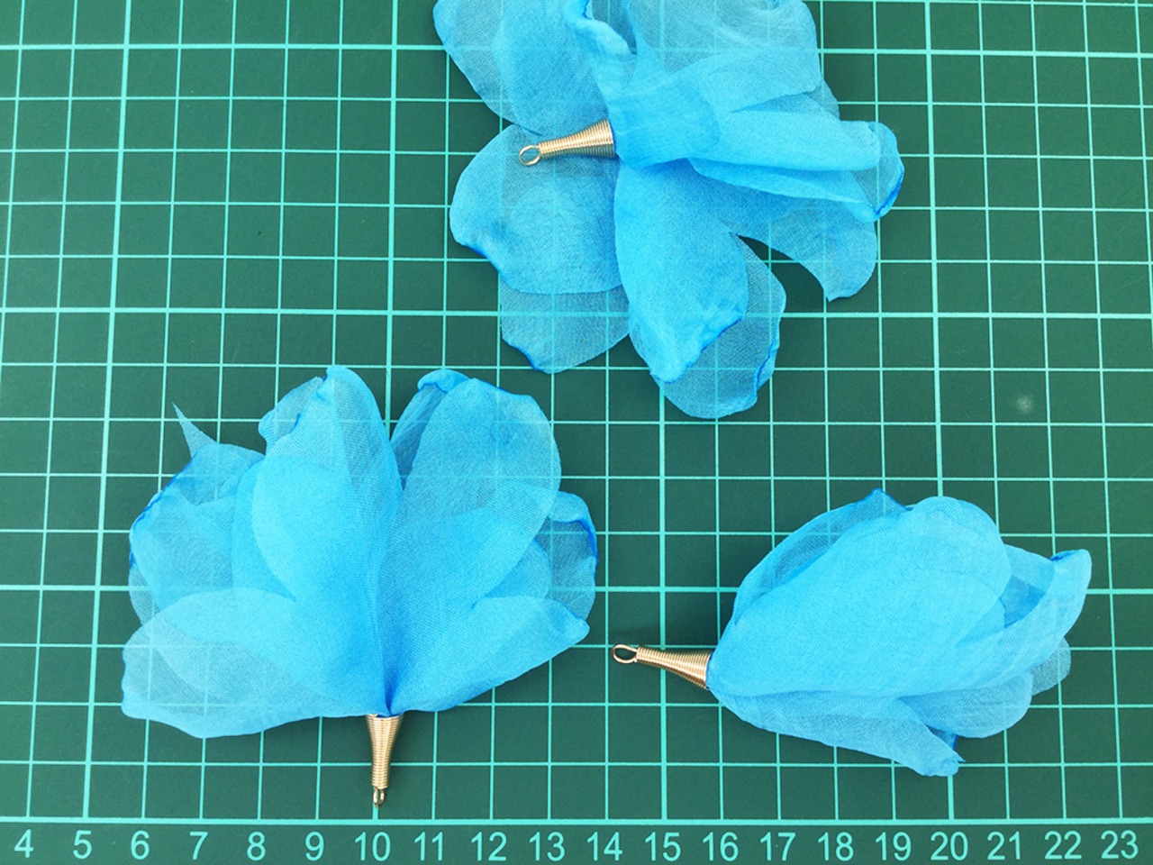 商品名:チャームパーツ フラワータッセル 炙り花びらゆらゆら調 10個 大きめ ライトブルー チャーム 花 アクセサリーパーツ ハンドメイドパーツ