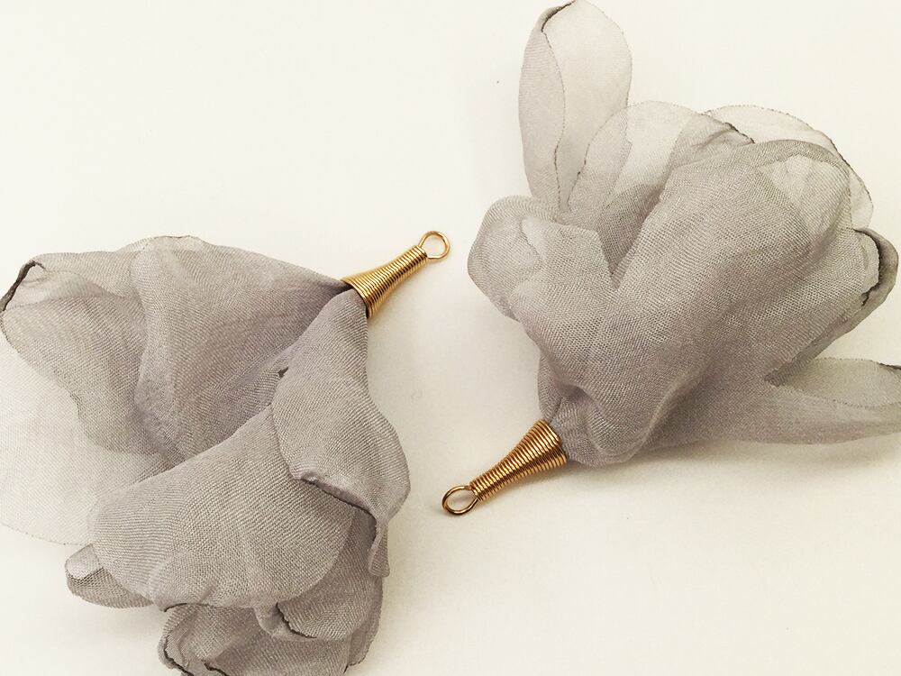 商品名:フラワータッセル グレー 大きめ 炙り花びらふわふわ調 10個 チャームパーツ フラワー アクセサリーパーツ ハンドメイドパーツ
