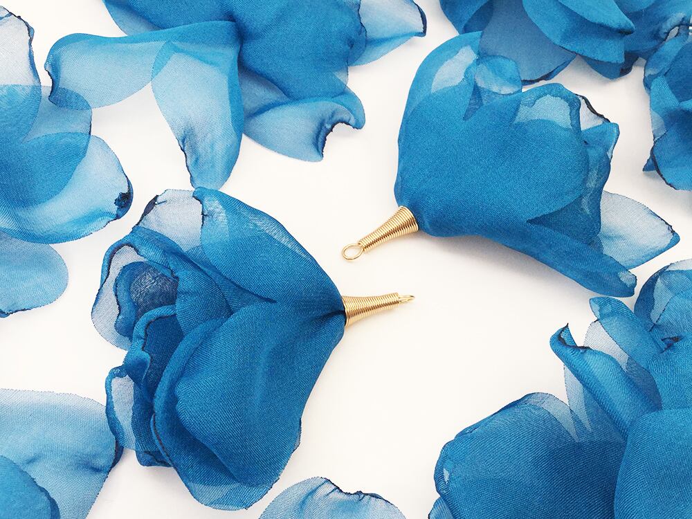 商品名:タッセルパーツ フラワー おおきい炙り花びら ブルー 10個 ロングタッセル フラワータッセル チャーム 花 アクセサリーパーツ