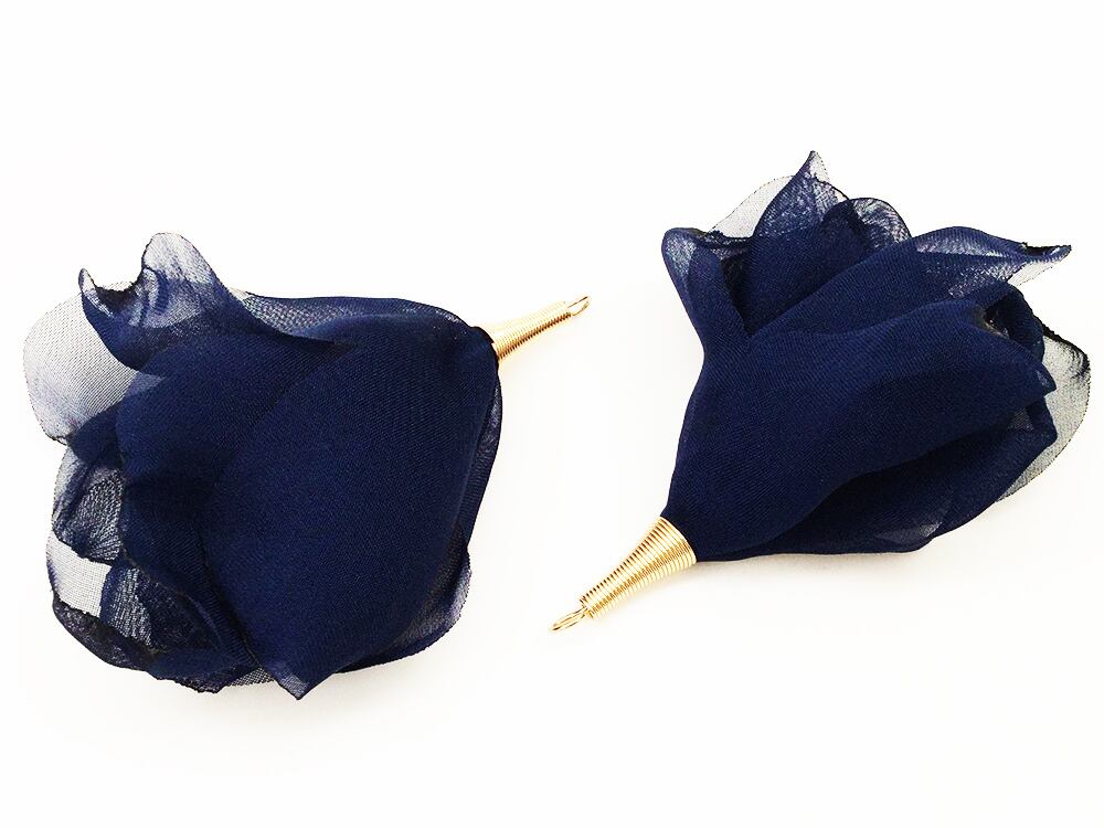 商品名:フラワータッセル ネイビー 炙り花びらゆらゆら調 10個 タッセルパーツ ピアスやイヤリングのチャーム等に チャームパーツ アクセサリーパーツ