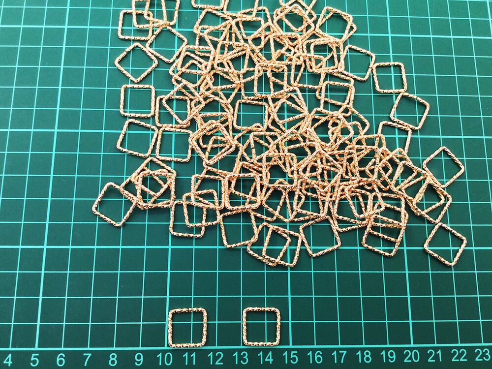 送料無料 デザイン カン 15mm ゴールド KC金 スクエア 100個 チャームパーツ 四角 フレームパーツ アクセサリーパーツ ハンドメイドパーツ AP1498