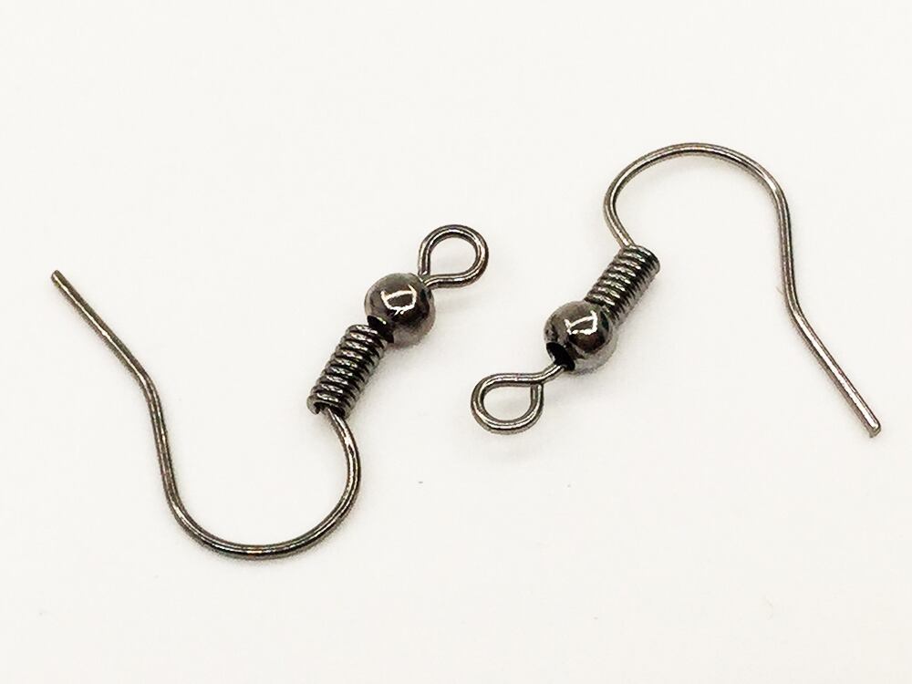 商品名:ピアスフック パーツ ガンメタリック 200個 丸玉コイル付き ピアスパーツ ピアス金具 アクセサリーパーツ ハンドメイドパーツ