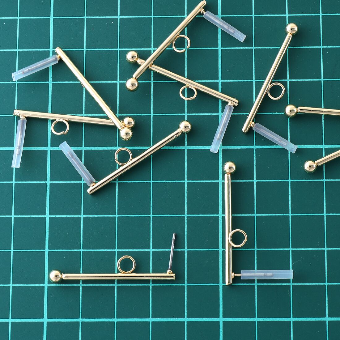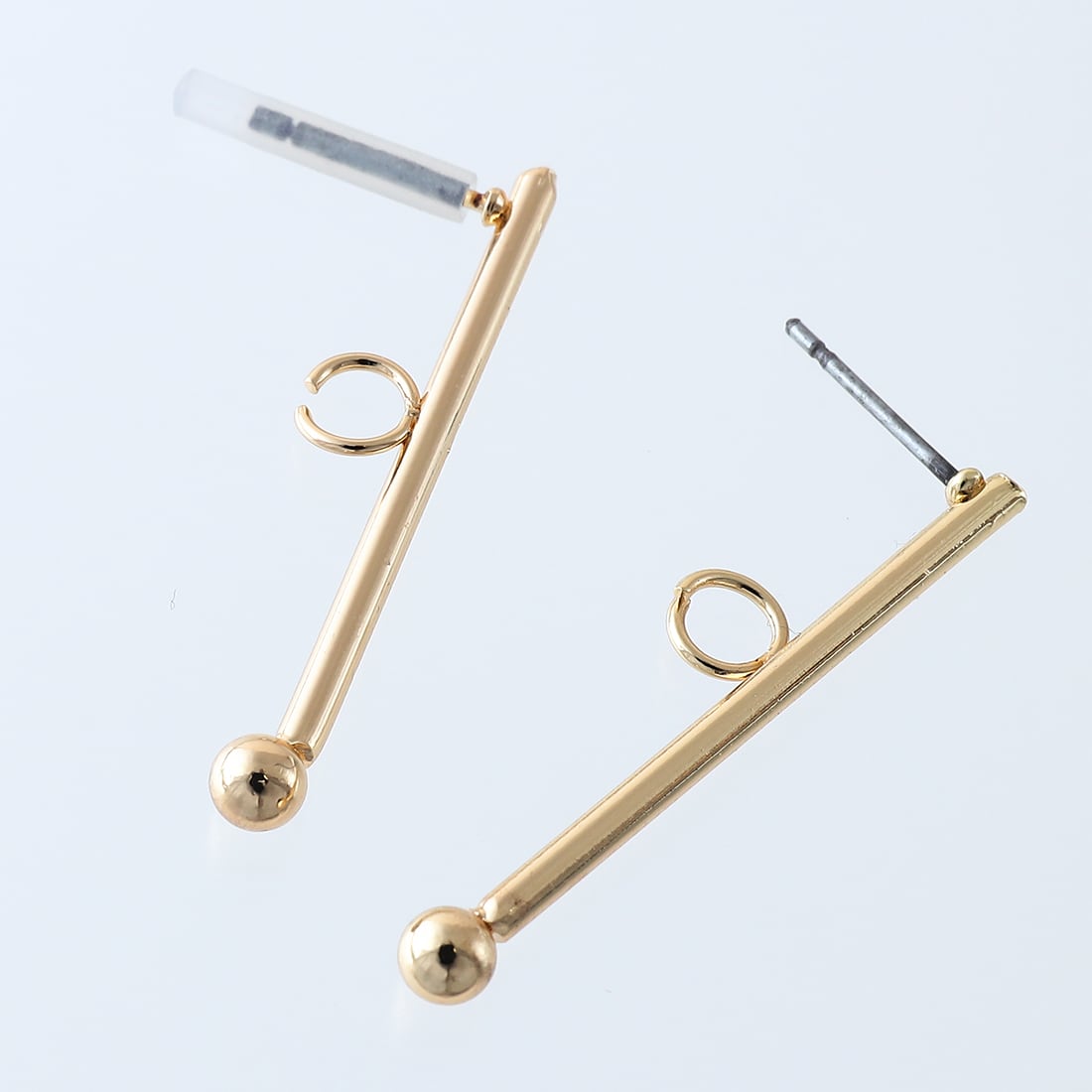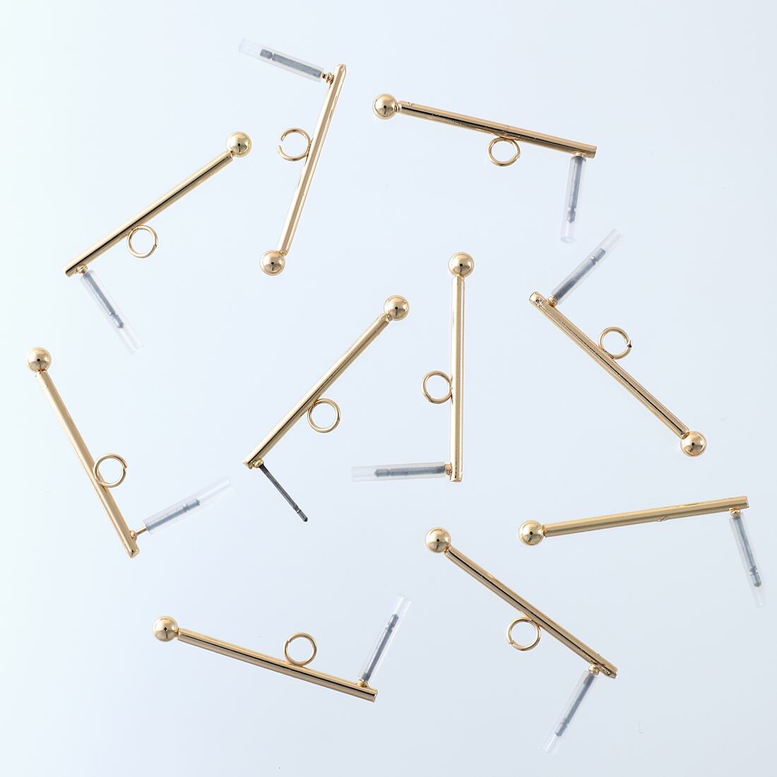 商品名: ピアスパーツ スティックタイプ トンファーみたい 丸玉 カン付き ゴールド ステンレス製ポスト 10個 ピアス金具 アクセサリーパーツ