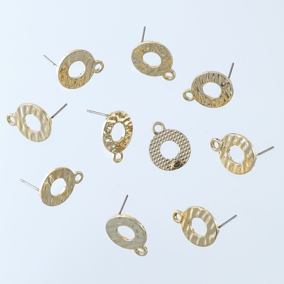 ピアスパーツ ゴールド ステンレスポスト 10個 セット 小さめ ラウンド 丸 13mm カン付き ピアス金具 手芸 アクセサリーパーツ