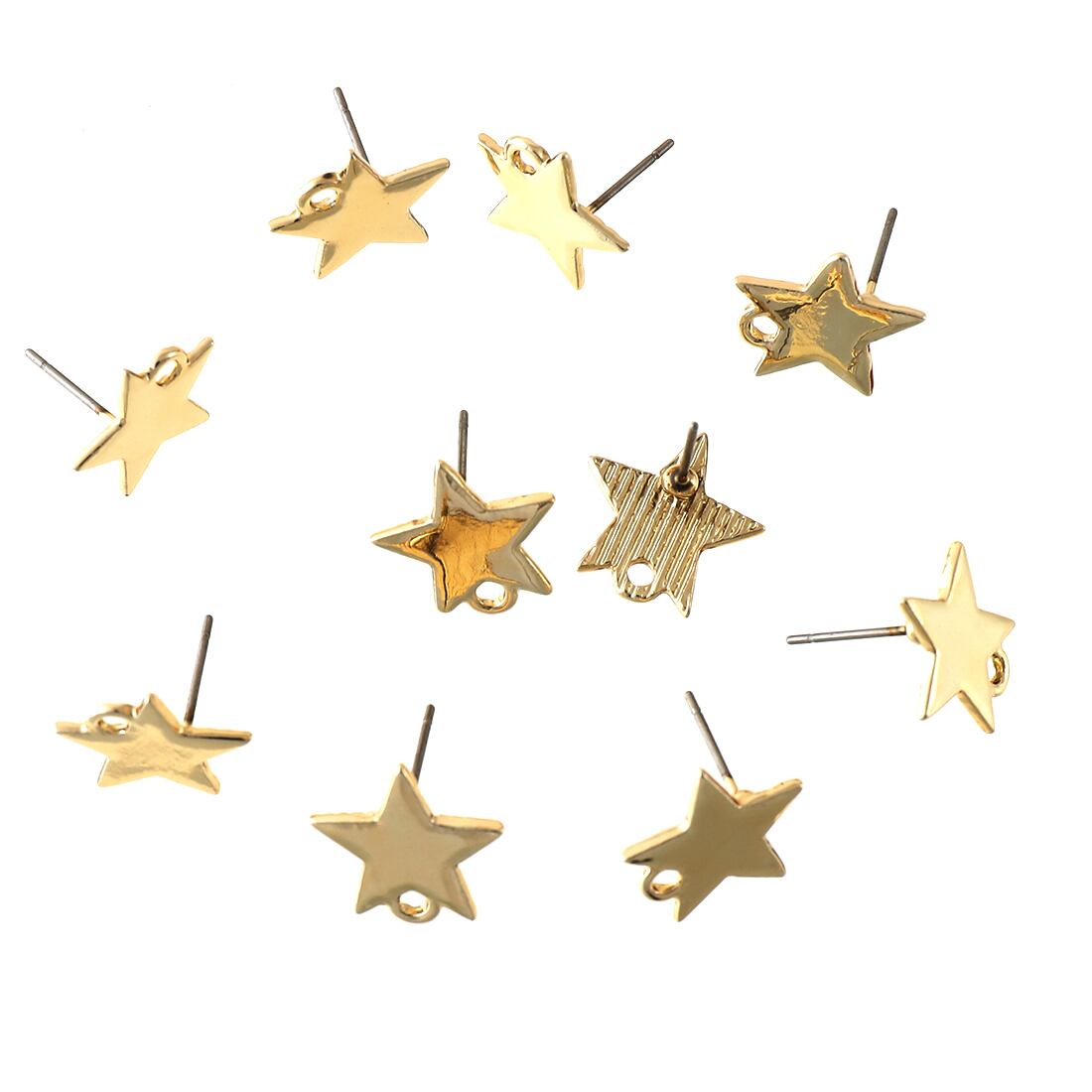送料無料 ステンレス製ポスト ピアスパーツ スター 星型 小さめ ゴールド カン付き 10個 シンプルピアスパーツ アクセサリーパーツ ハンドメイドパーツ AP1601