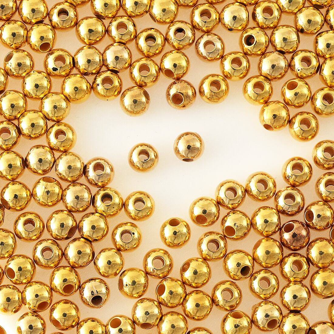 商品名:ゴールド ビーズ 5mm プラ製で軽い 500個 両穴 ビーズパーツ アクセサリーパーツ ラウンド スペーサー ハンドメイドパーツ