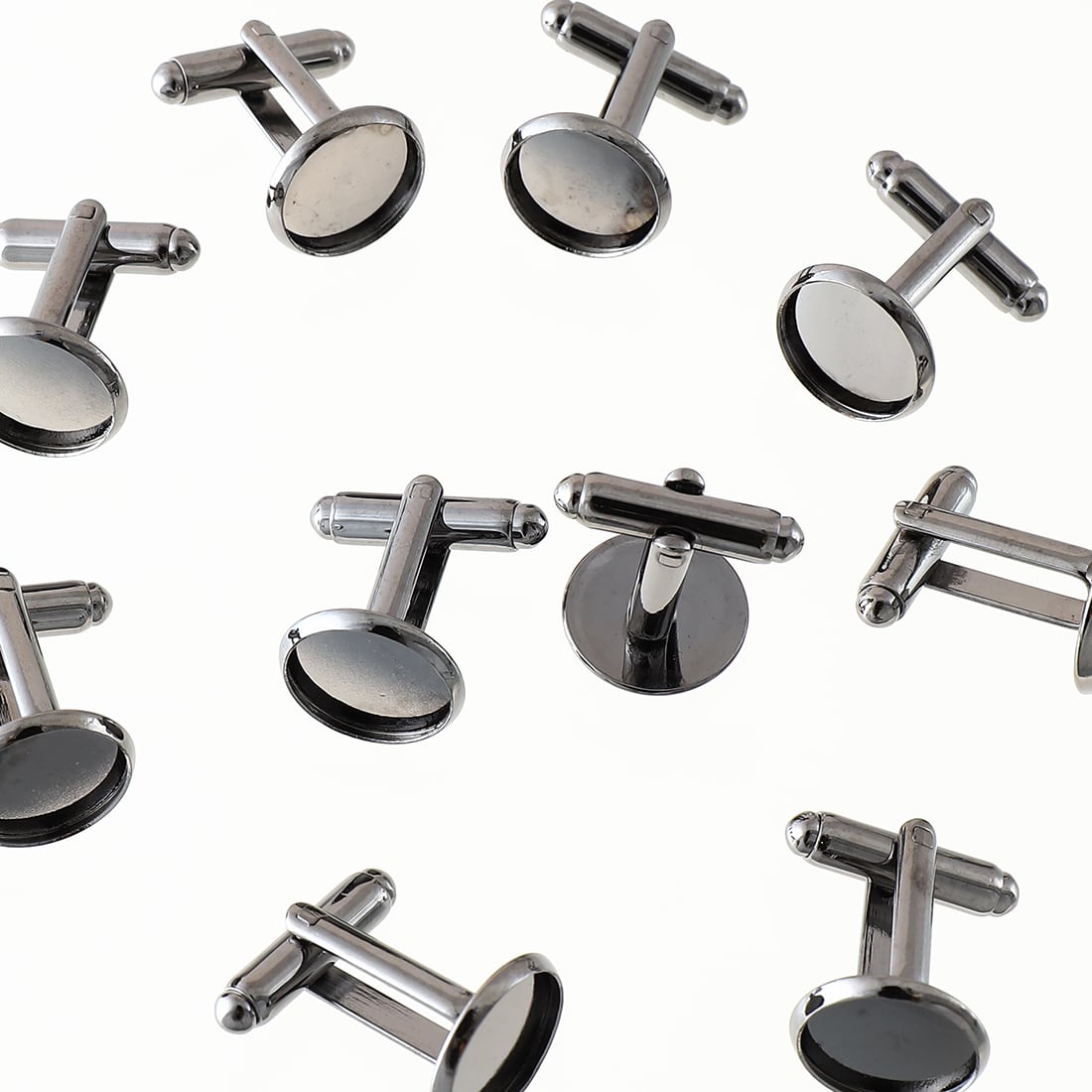 送料無料 カフスボタンパーツ ミール皿台座付き 台座内径12mm 珍色ガンメタリック 10個 カフス 金具 セッティング台座 アクセサリーパーツ AP1638