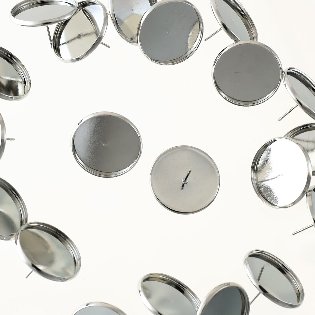 商品名:ピアスパーツ シルバー 20個 大きめ ミール皿 台座付き 台座内径20mm アクセサリーパーツ 台座付きピアス パーツ ハンドメイドパーツ