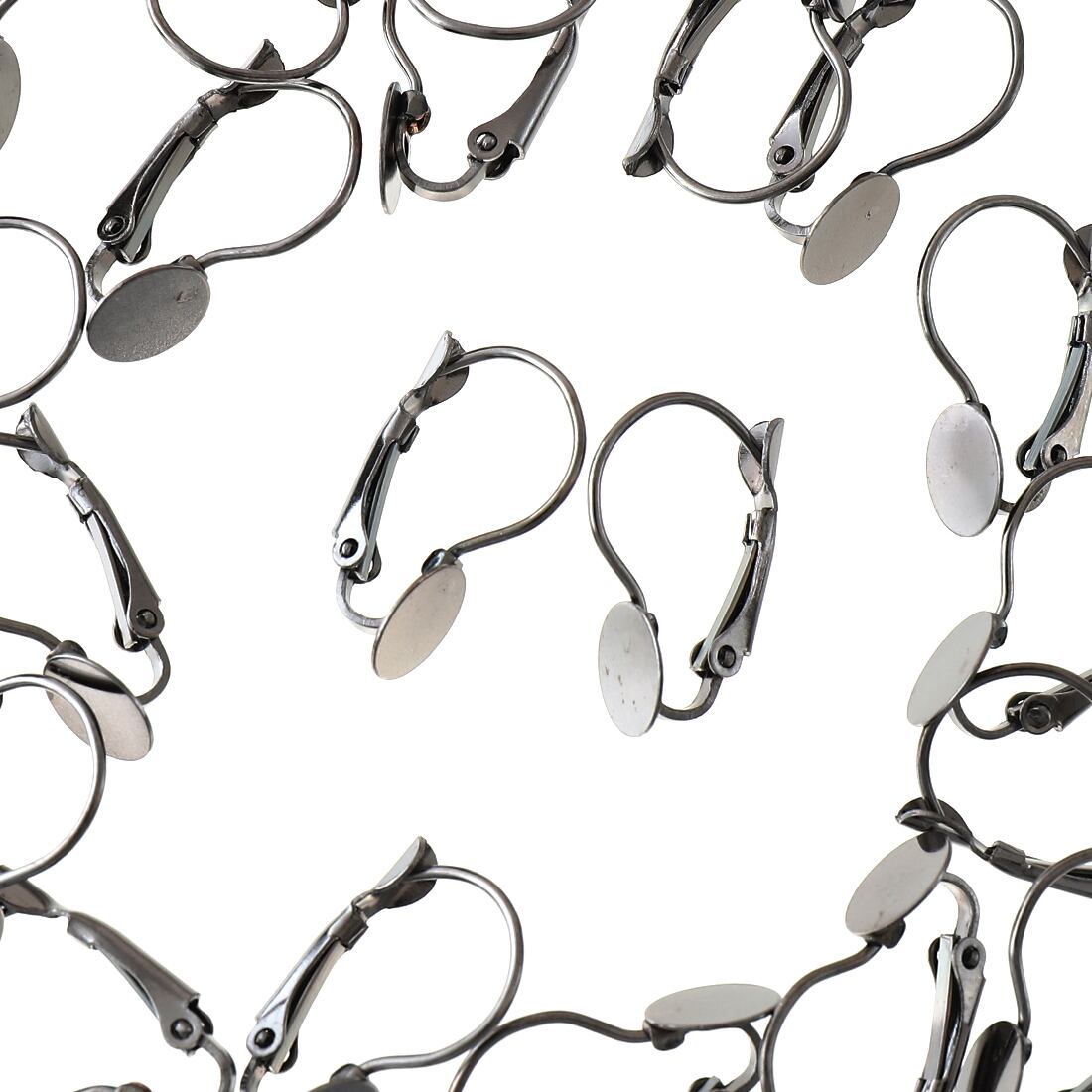 送料無料 ピアスパーツ 8mm台座付き 20個 珍色ガンメタリック ピアスフック パーツ セッティング台座付き ピアス金具 アクセサリーパーツ AP1655
