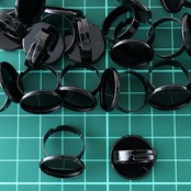 送料無料 リングパーツ ミール皿 台座付き 内径18mm 指輪 リング幅調整可能 ブラック 20個 指輪パーツ セッティング台座 カボション貼付にも アクセサリーパーツ AP1662