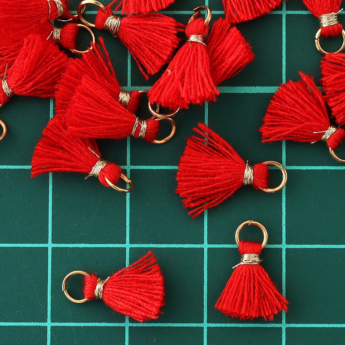 送料無料 タッセルチャーム 20個 レッド 超小サイズ ミニタッセル フリンジタッセル チャームパーツ アクセサリーパーツ ハンドメイドパーツ AP1667