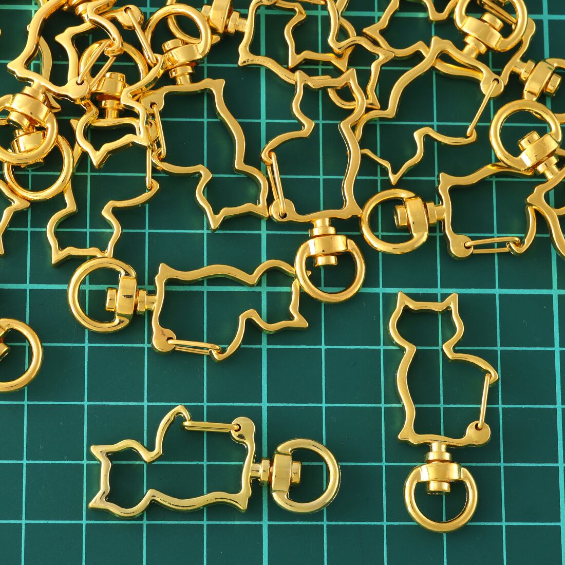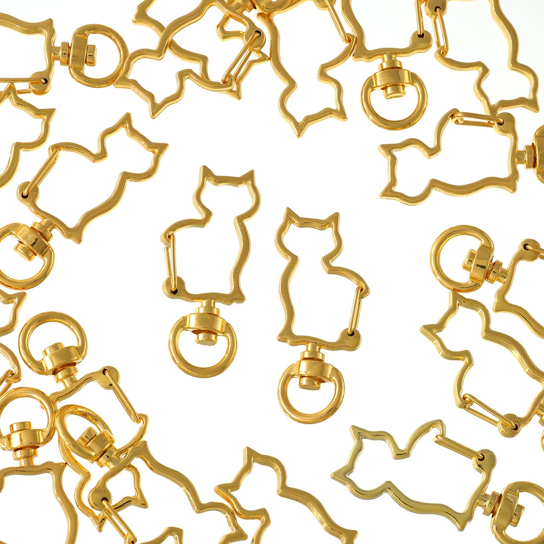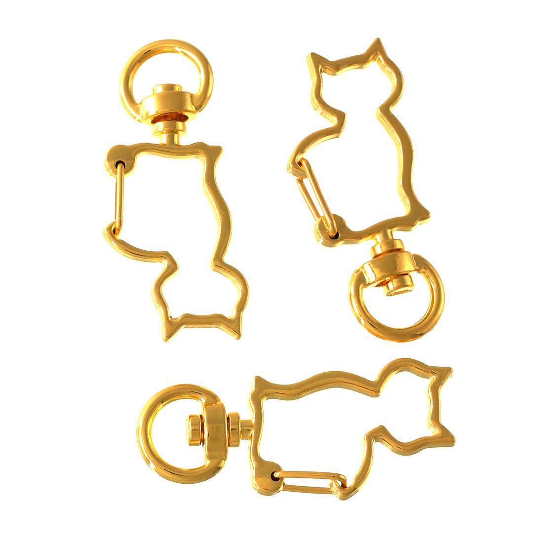 送料無料 キーホルダーパーツ ネコ おすわりスマート猫 ゴールド 20個 ナスカン 猫 キーホルダーパーツ 金具 アクセサリーパーツ