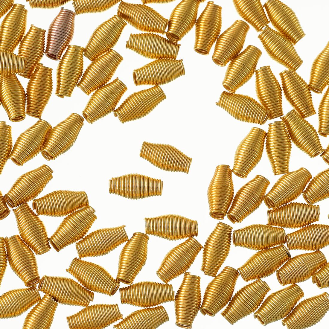 送料無料 コイルパーツ チャーム 米粒みたいな形 貫通型 ゴールド 100個 コイルチャーム 連結パーツ スペーサー アクセサリーパーツ