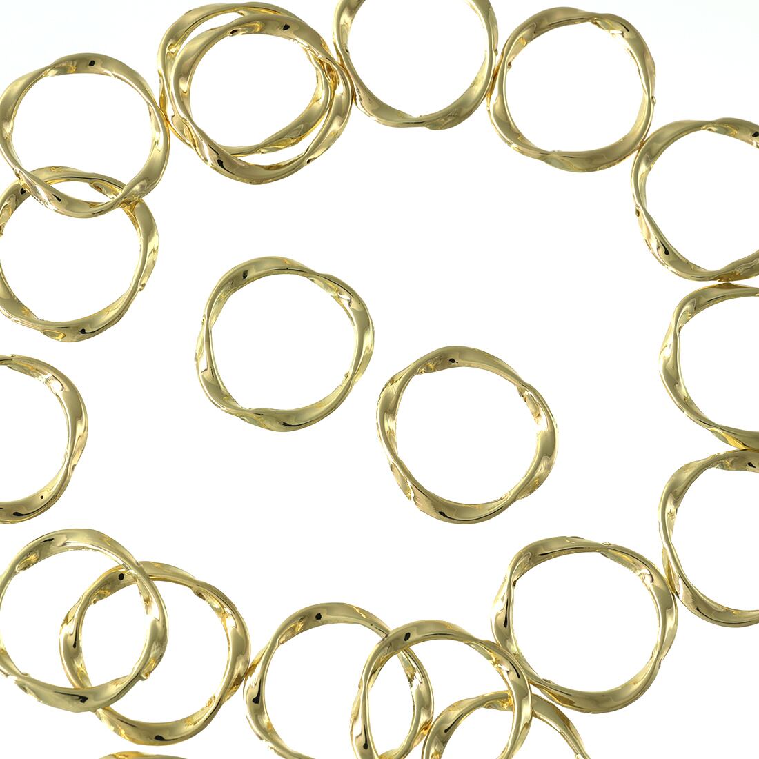 送料無料 ラウンドパーツ ゴールド KC金 ゆがみ加工リング 小さめ チャーム 20個 フレームパーツ 丸 ハンドメイドパーツ アクセサリーパーツ