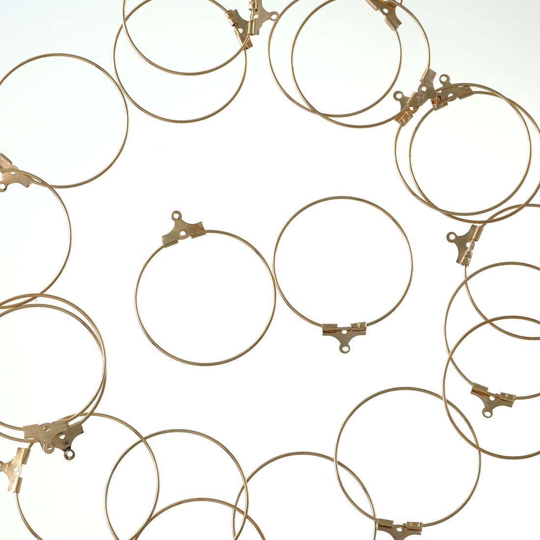 送料無料 フープ 金具 カン付き2穴 ラウンド 30mm 丸 20個 ゴールド KC金 ピアスパーツ イヤリングパーツ アクセサリーパーツ