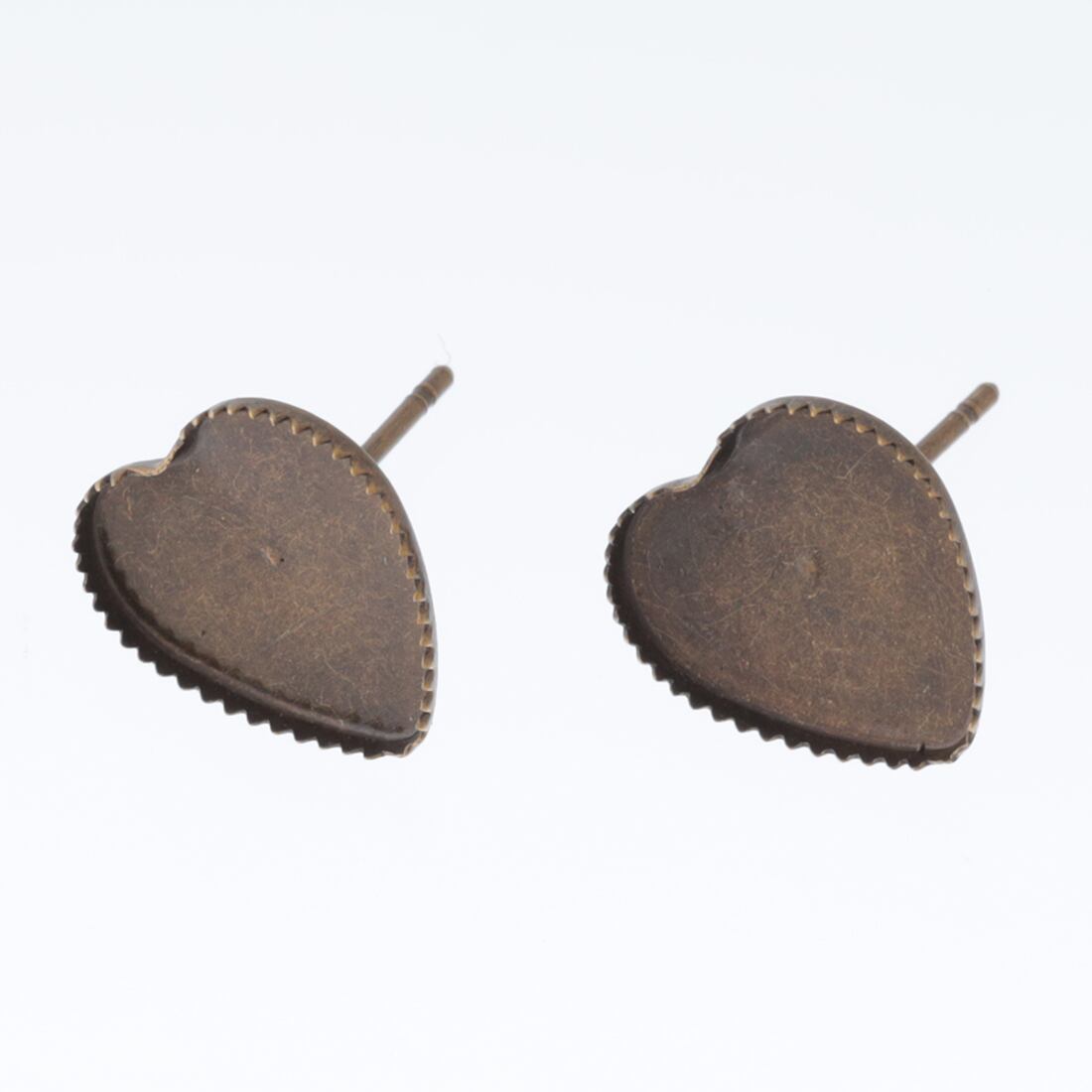 送料無料 ピアスパーツ アンティーク 金古美 20個 ハート ミール皿 12mm 台座 パーツ ピアス金具 ハンドメイド 手芸材料 アクセサリーパーツ AP1829