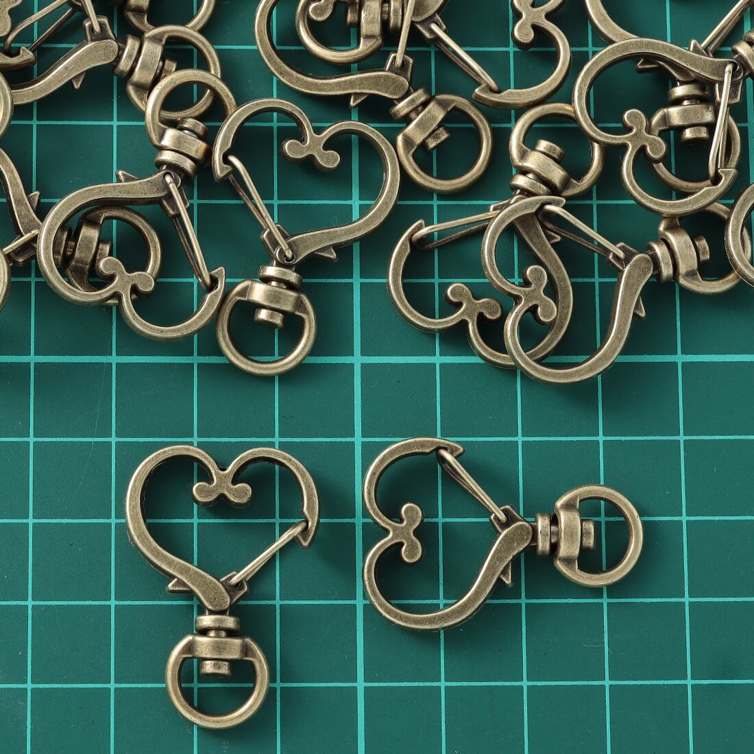 送料無料 キーホルダーパーツ ハート ナスカンパーツ 20個 金古美 アクセサリーパーツ ナスカン 金具 ハンドメイドパーツ