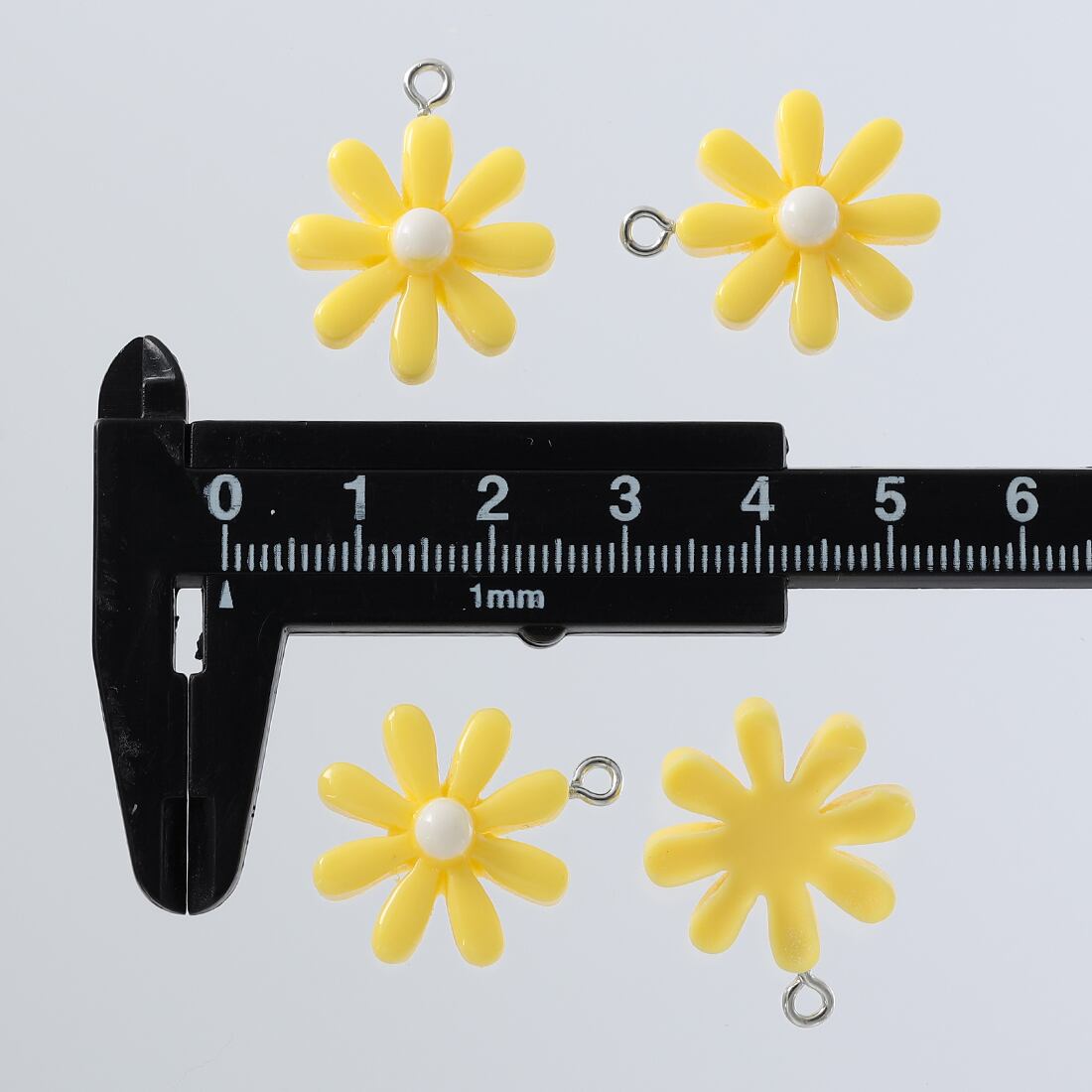 送料無料 チャーム フラワー カン付 咲くまくり花びら 20個 イエロー チャームパーツ 花 アクセサリーパーツ AP1869