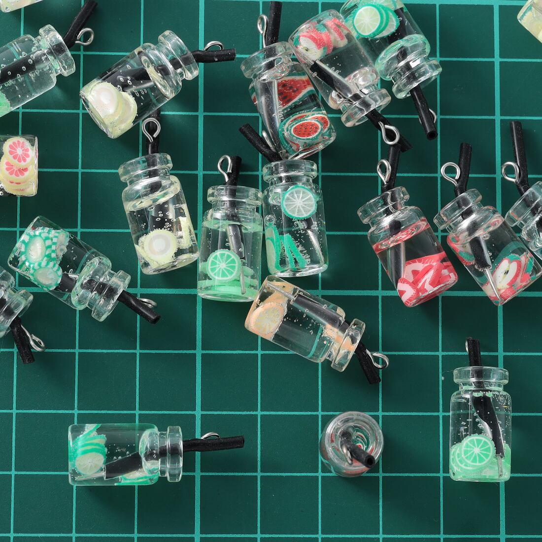 送料無料 チャーム ドリンク 20個 フルーツジュース瓶調 ミックス スライスパーツ入り チャームパーツ アクセサリーパーツ イヤリングパーツ