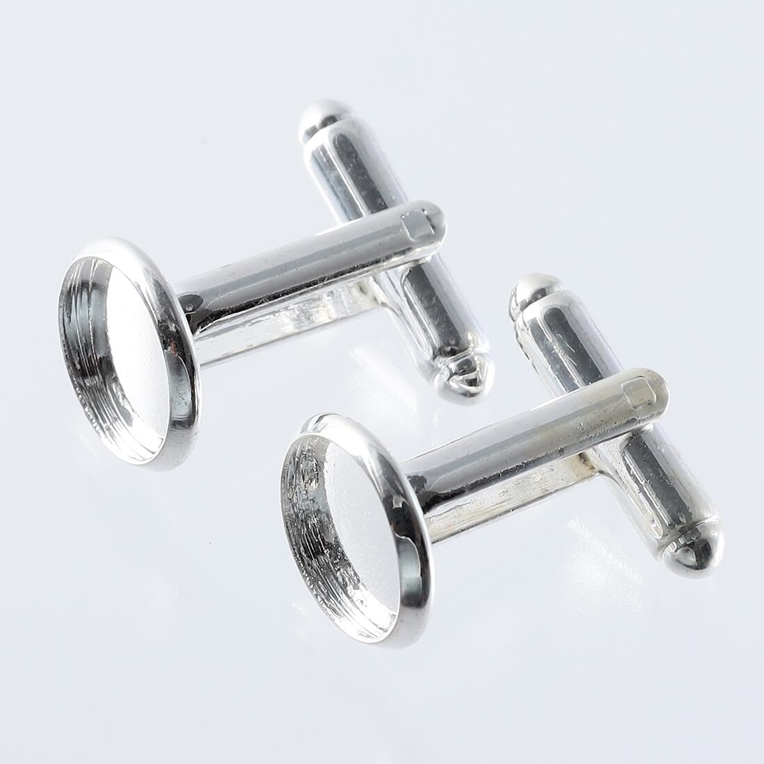 送料無料 カフスボタン パーツ シルバー 白銀 ミール皿台座付き 台座内径10mm 20個 カフスボタンパーツ セッティング台座 アクセサリーパーツ