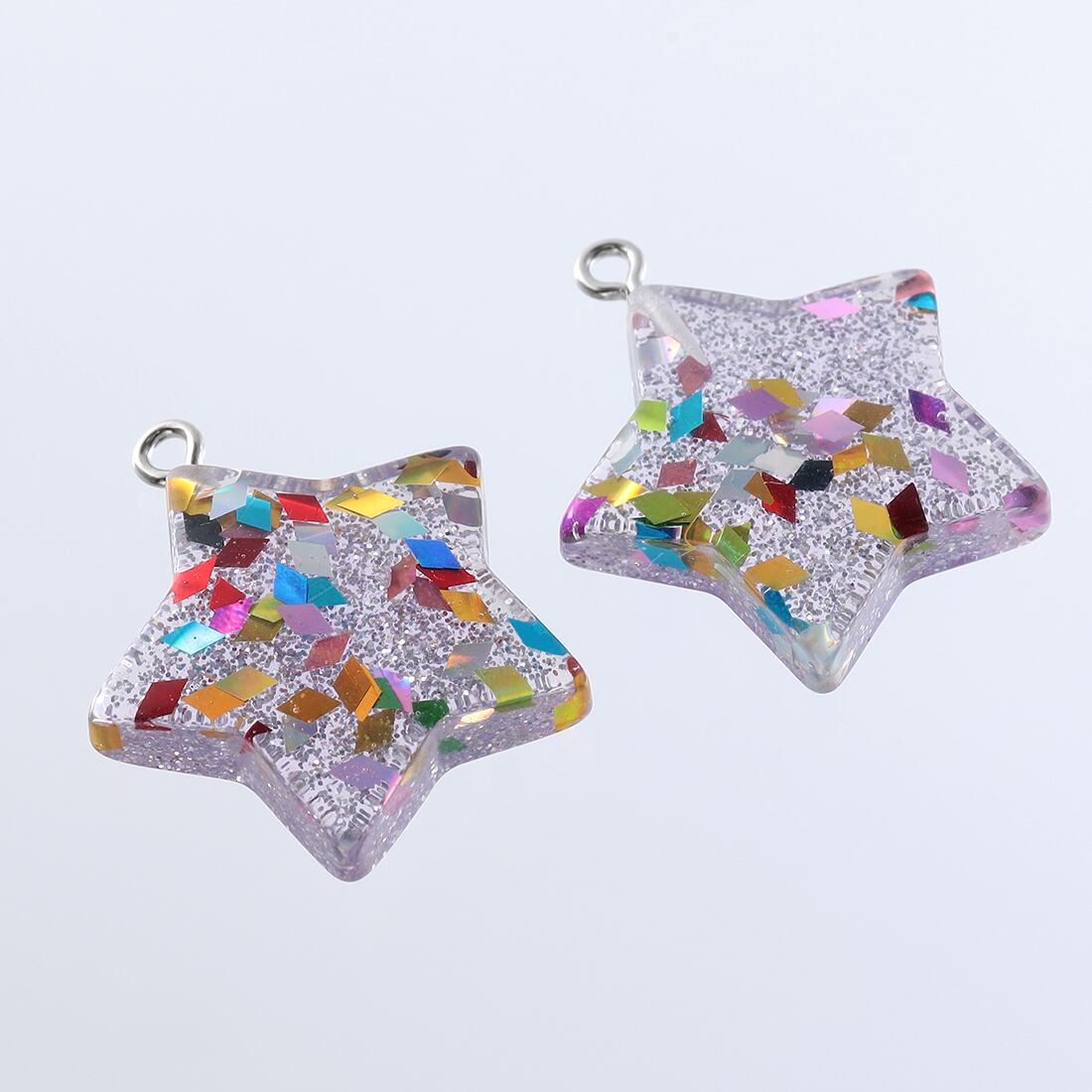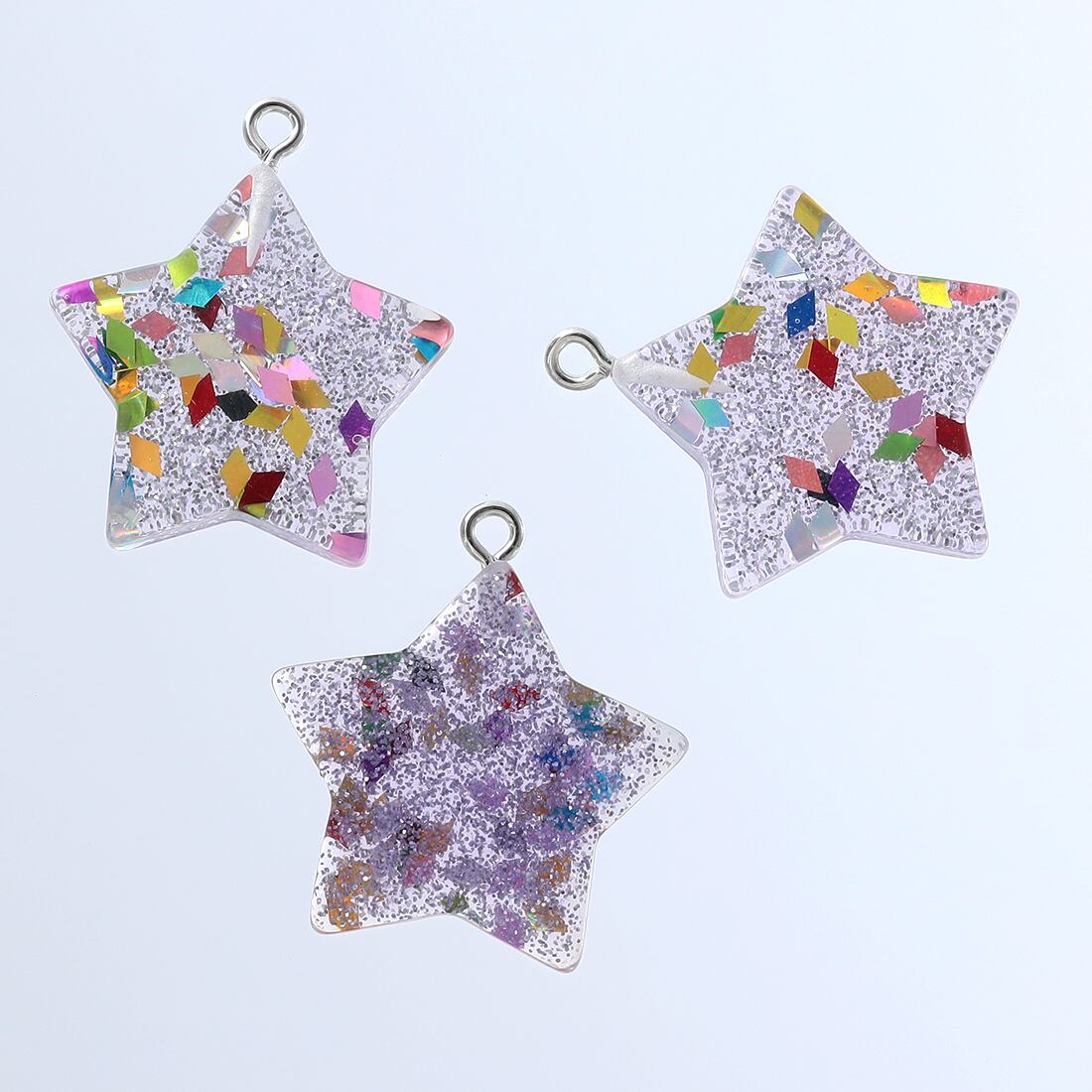 チャーム スター 透け感有中ラメラメ カン付き 10個 ハンドメイドパーツ チャームパーツ 星 アクセサリーパーツ