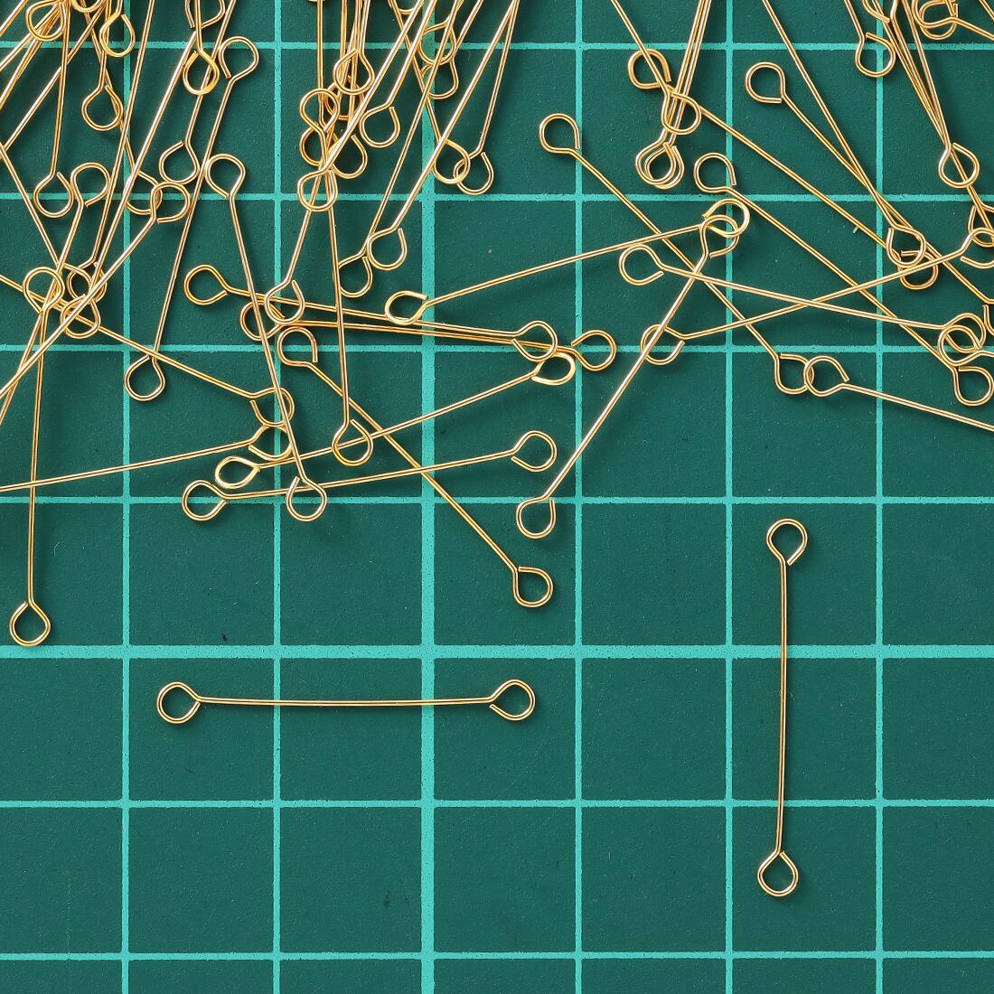 9ピン ゴールド 25mm 2.5cm 100個 両カン付き スチール製 ピン 接続金具 手芸材料 ハンドメイド 金具 アクセサリーパーツ