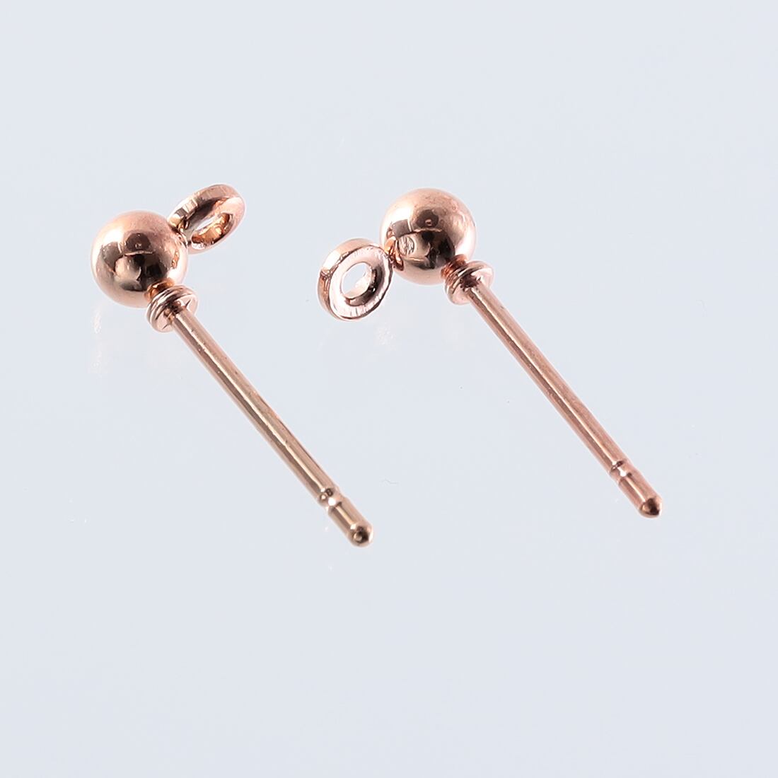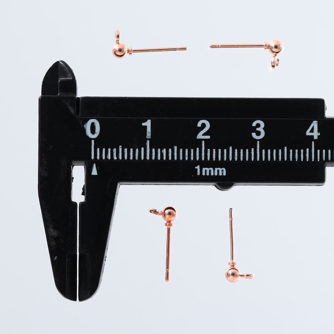 ピアスパーツ ピンクゴールド セット 丸 3mm 丸玉 50個 カン付き ピアス金具 ハンドメイド 手芸材料 アクセサリーパーツ