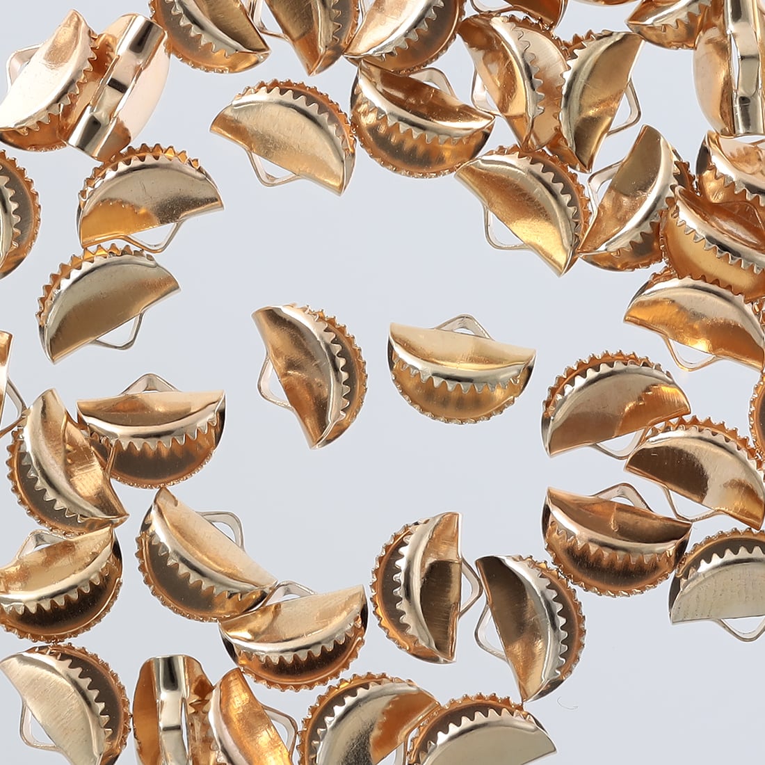 ワニカン ゴールド 10mm 50個 扇型 紐留め金具 ワニグチ リボン留め レース留め ワニ口 アクセサリー パーツ 金具