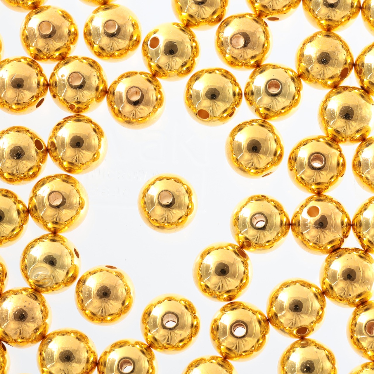 ビーズ 10mm ゴールド 丸 大きめ プラ製 100個 セット 両穴 軽い ビーズパーツ ラウンド スペーサー ハンドメイド アクセサリー