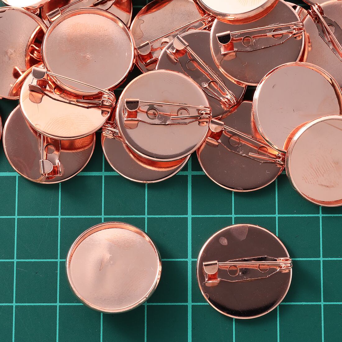 ブローチピン 台座 付き 20mm 20個 ピンクゴールド ブローチ 金具 ミール皿 セッティング台座 ハンドメイド アクセサリー パーツ