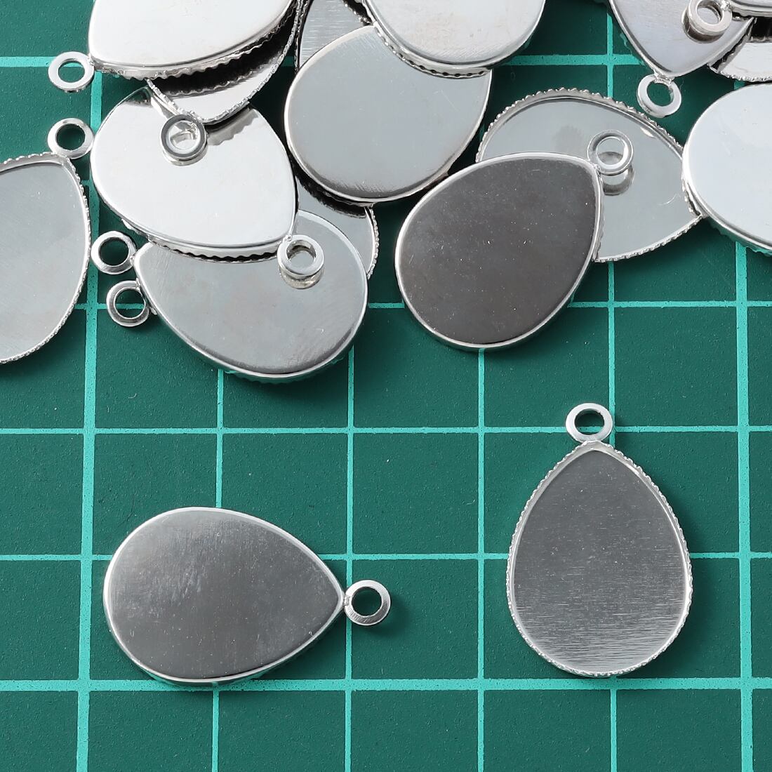 ミール皿 シルバー しずく 20個 18mm カン付き 雫 セッティング レジン 台座 金具 ハンドメイド 手芸 アクセサリー パーツ