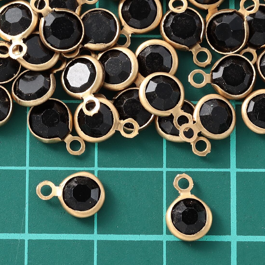 チャーム 丸 6mm ガラスストーン 50個 カン付き ブラック 黒 ラウンド アクセサリートップ まる アクセサリー パーツ