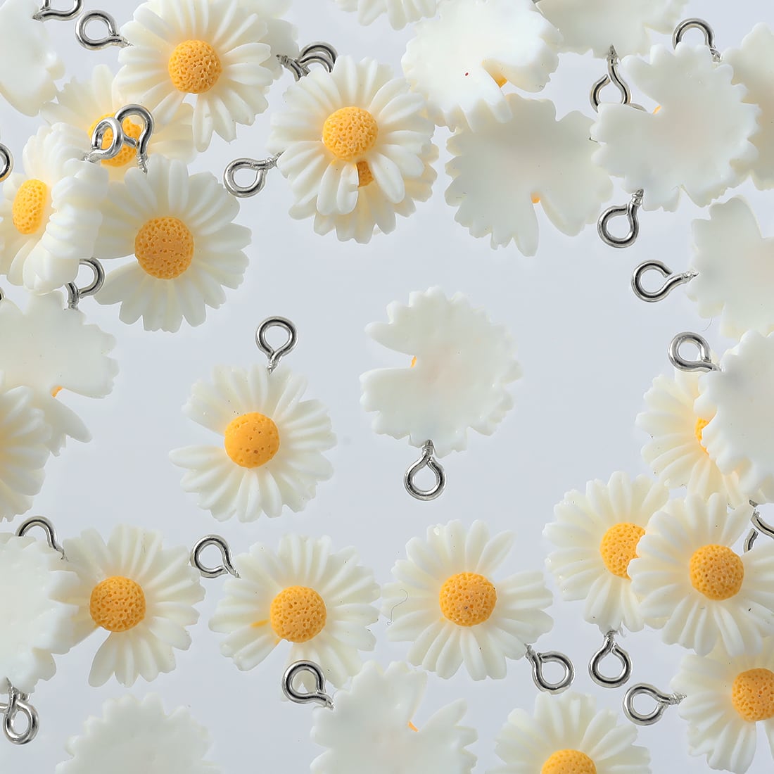 送料無料 チャーム フラワー 花 小さめ 40個 白/黄色 ホワイト/イエロー キーホルダー ストラップ アクセサリー パーツ AP2109