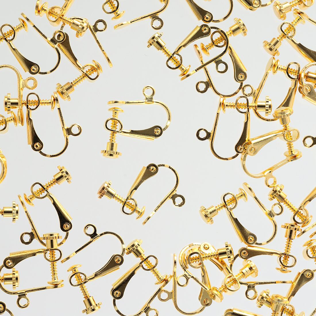 イヤリング パーツ ゴールド 40個 ネジバネ式 4mm 台座 丸皿 カン付き アクセサリー 金具 ハンドメイド AP2153