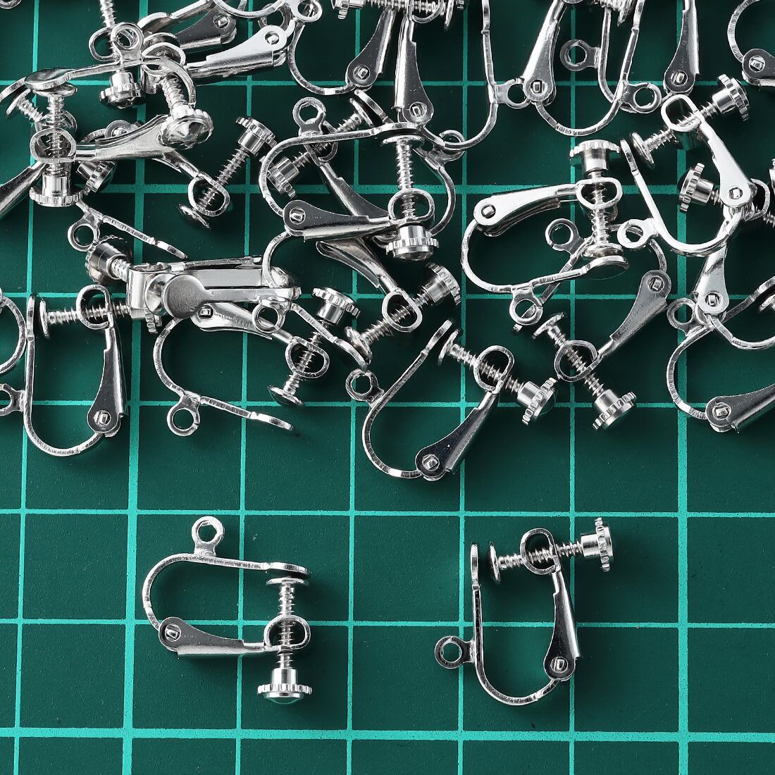 イヤリング パーツ シルバー 40個 ネジバネ式 4mm 台座 丸皿 カン付き アクセサリー 金具 ハンドメイド AP2155