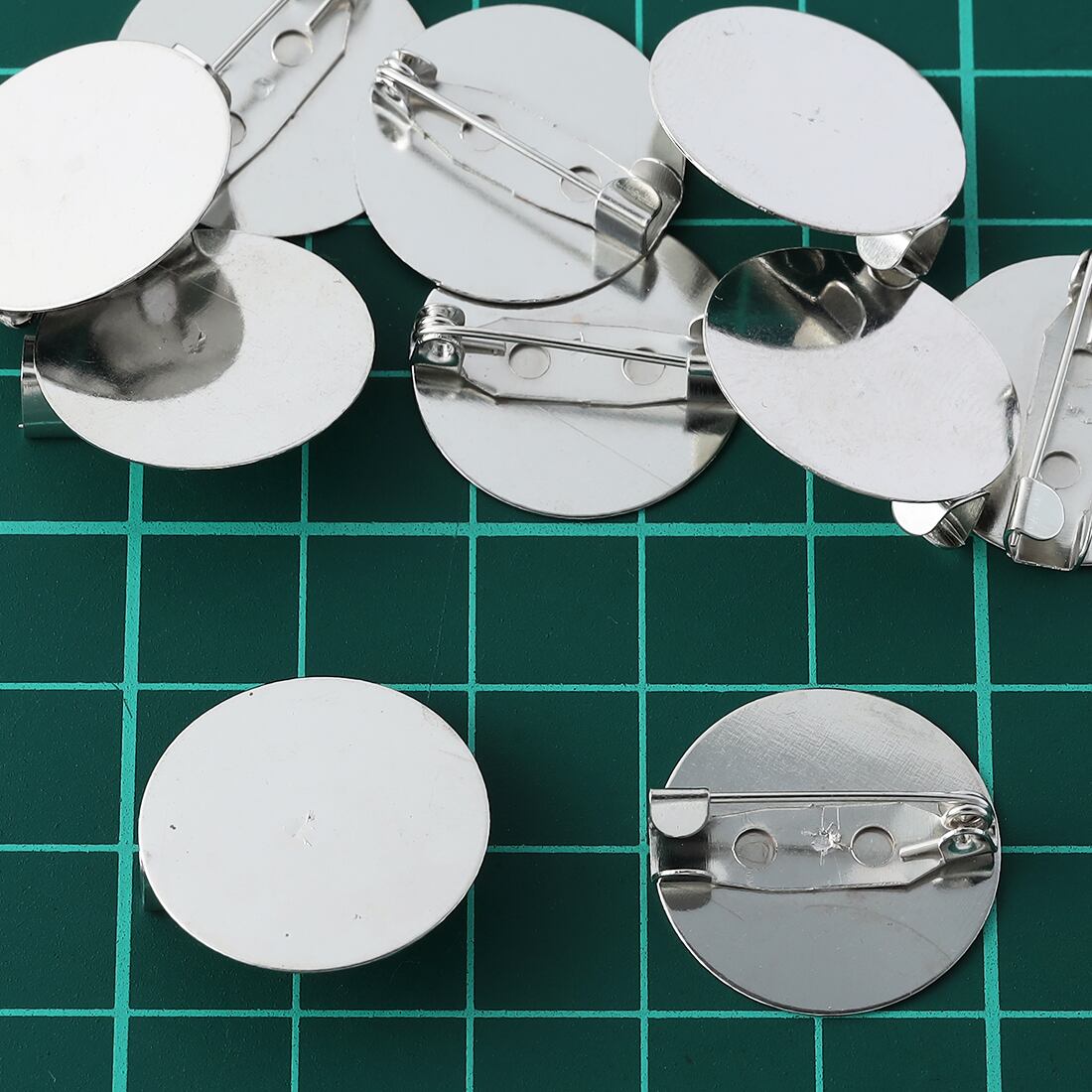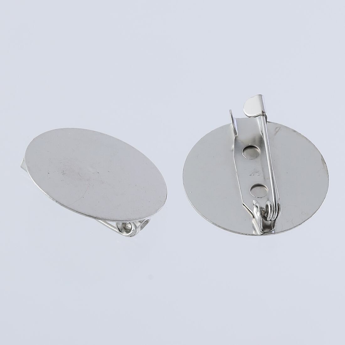 ブローチピン 台座 付き シルバー 20mm丸皿 ふち無し 10個 ブローチ 金具 セッティング台 アクセサリー パーツ AP2198