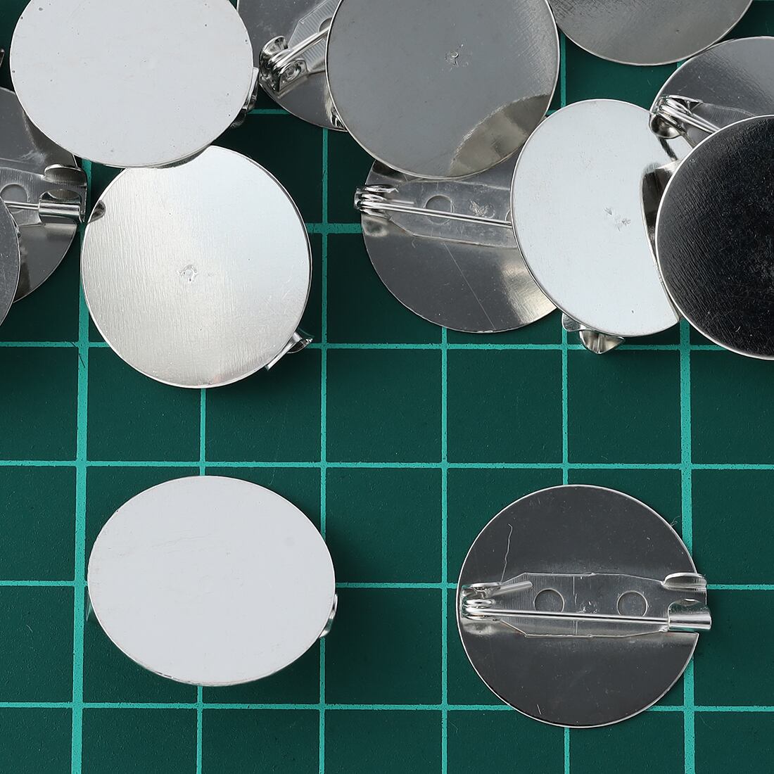 ブローチピン 台座 付き シルバー 20mm丸皿 ふち無し 20個 ブローチ 金具 セッティング台 アクセサリー パーツ AP2199