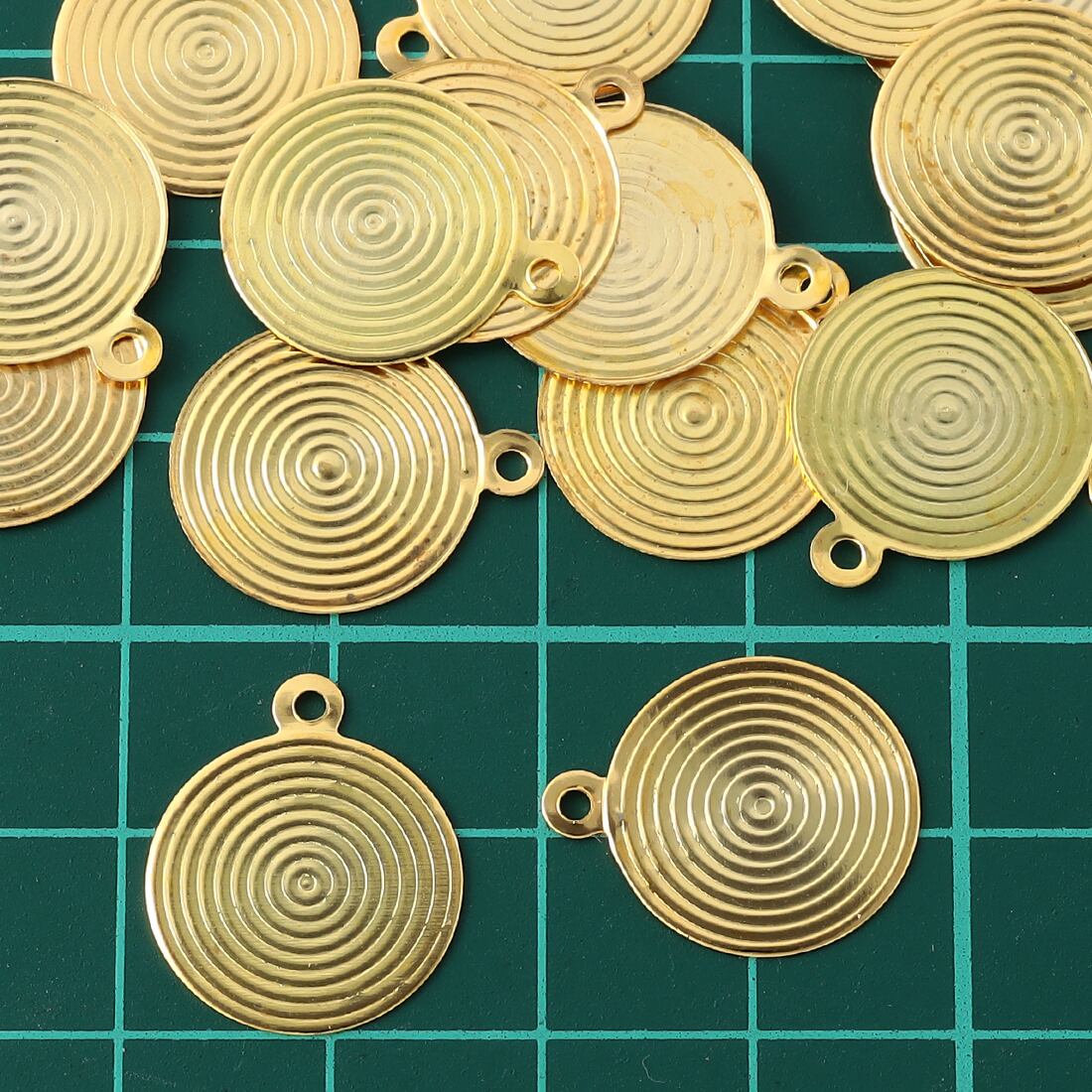 メタルパーツ プレート 丸 ゴールド 模様有 15mm 20個 カン付き チャーム ラウンド アクセサリー 金具 AP2208