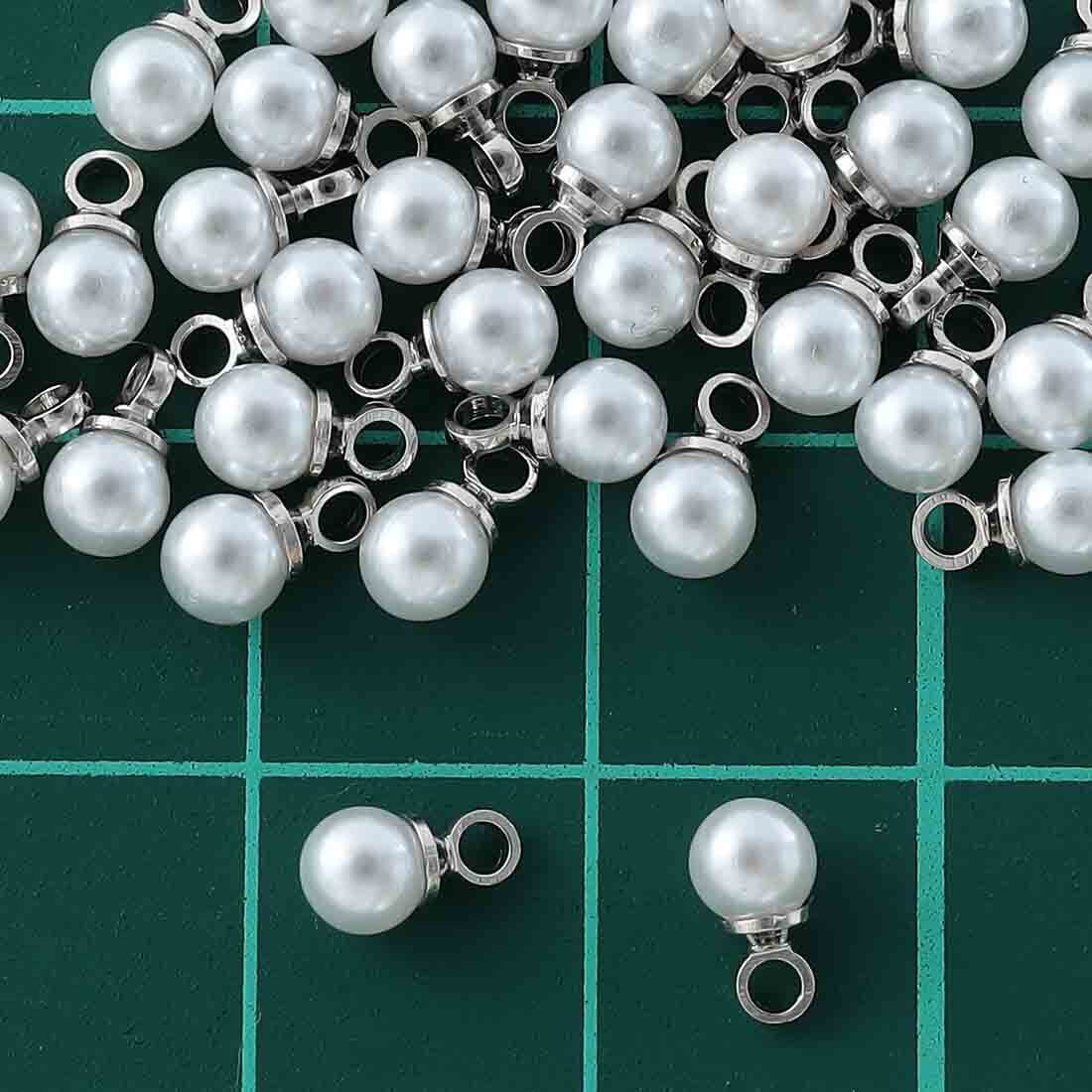 パールチャーム プラ製 丸 4mm 40個 カン付き ホワイト 金具シルバー ハンドメイド アクセサリー パーツ AP2231