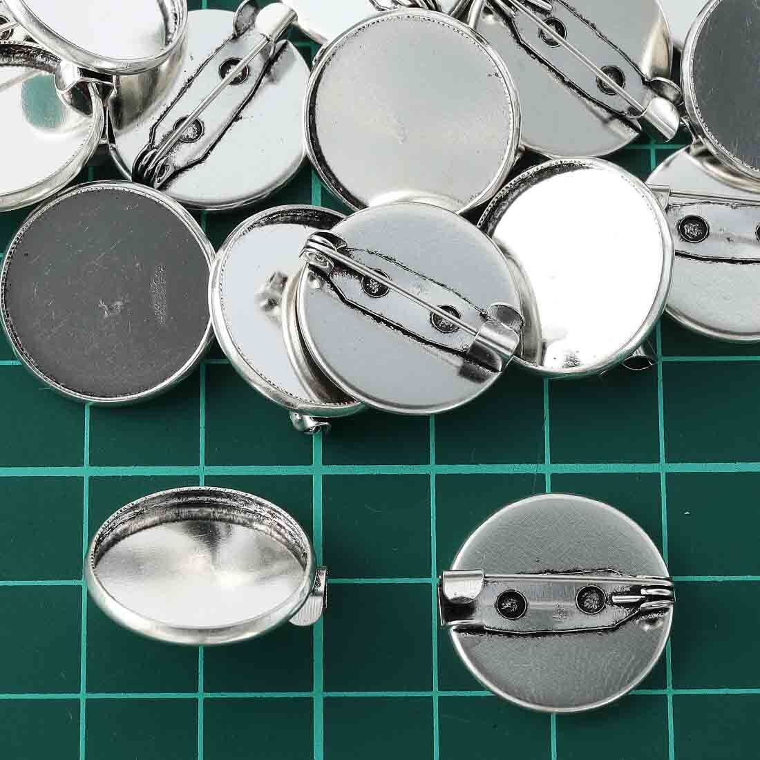 ブローチピン 台座 付き シルバー 18mm 丸皿 ふち有 20個 ブローチ 金具 セッティング台 アクセサリー パーツ AP2243