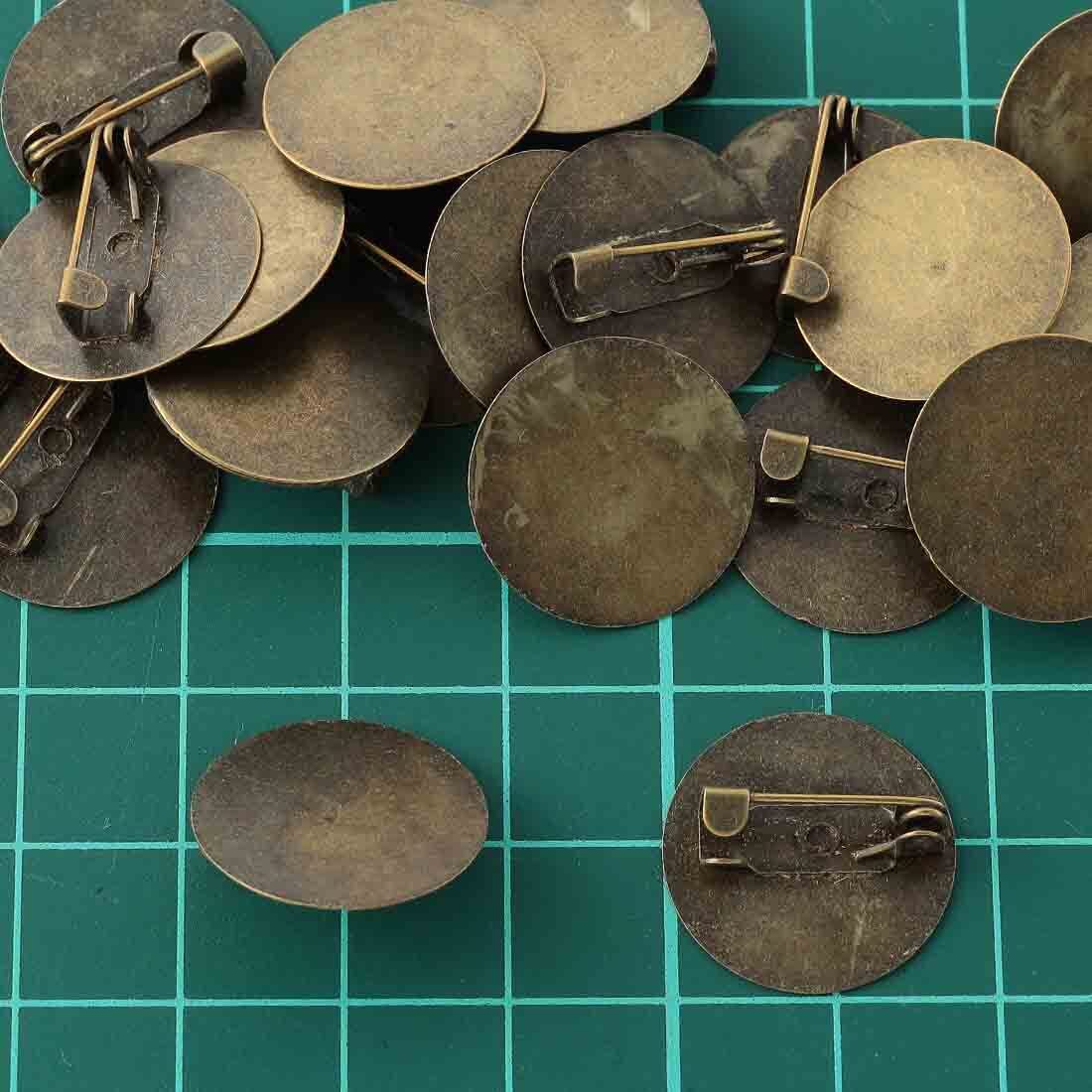 ブローチピン 台座 付き アンティーク 18mm 金古美 丸皿 ふち無 20個 ブローチ 金具 セッティング台 アクセサリー パーツ AP2249