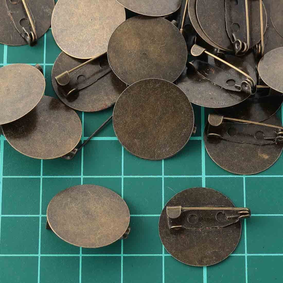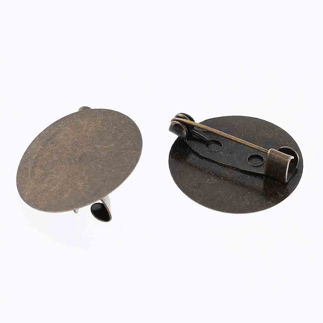 ブローチピン 台座 付き アンティーク 20mm 金古美 丸皿 ふち無 20個 ブローチ 金具 セッティング台 アクセサリー パーツ AP2251