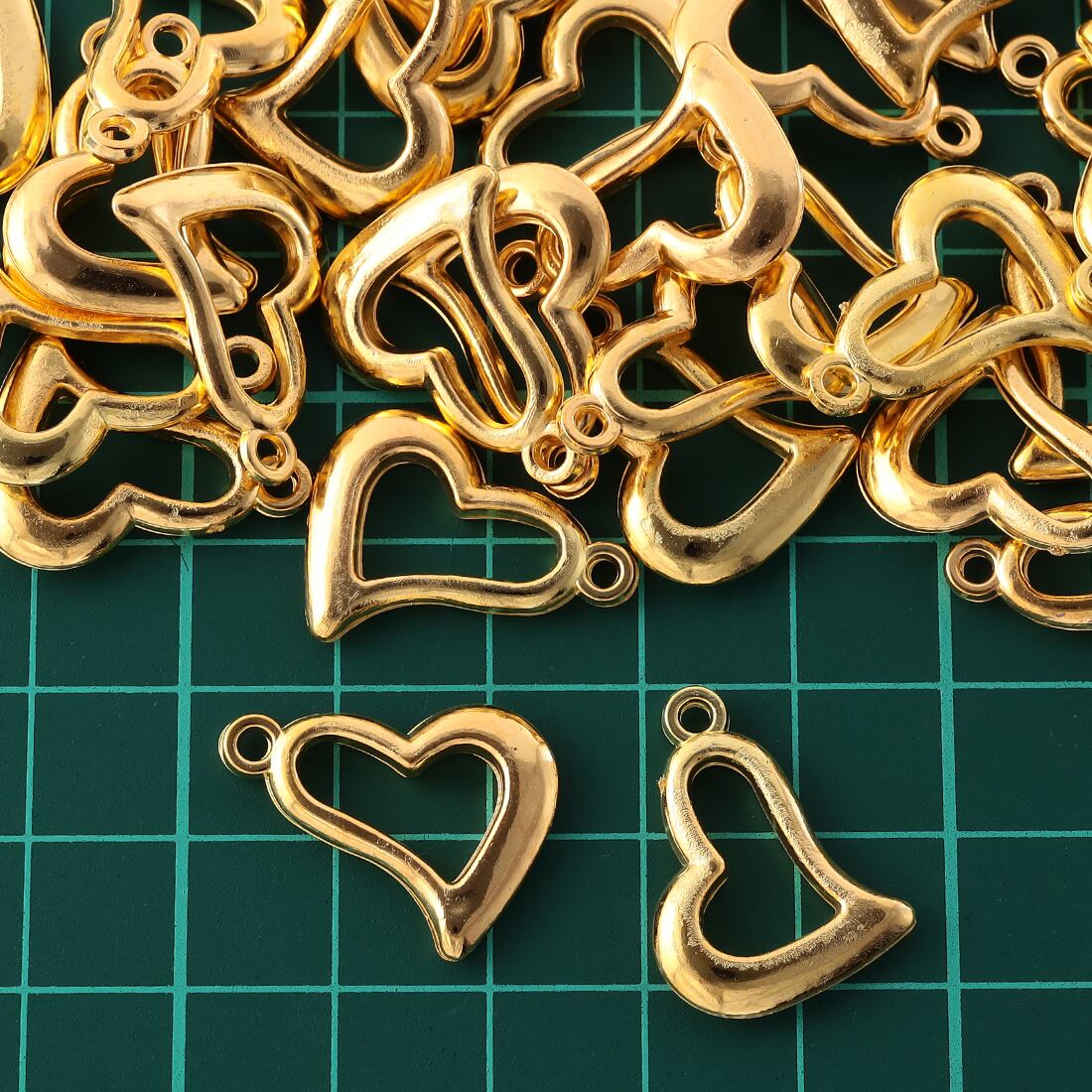 チャーム ハート ゴールド アンティーク 22x17 40個 カン付き プラ製 アクセサリートップ パーツ AP2298