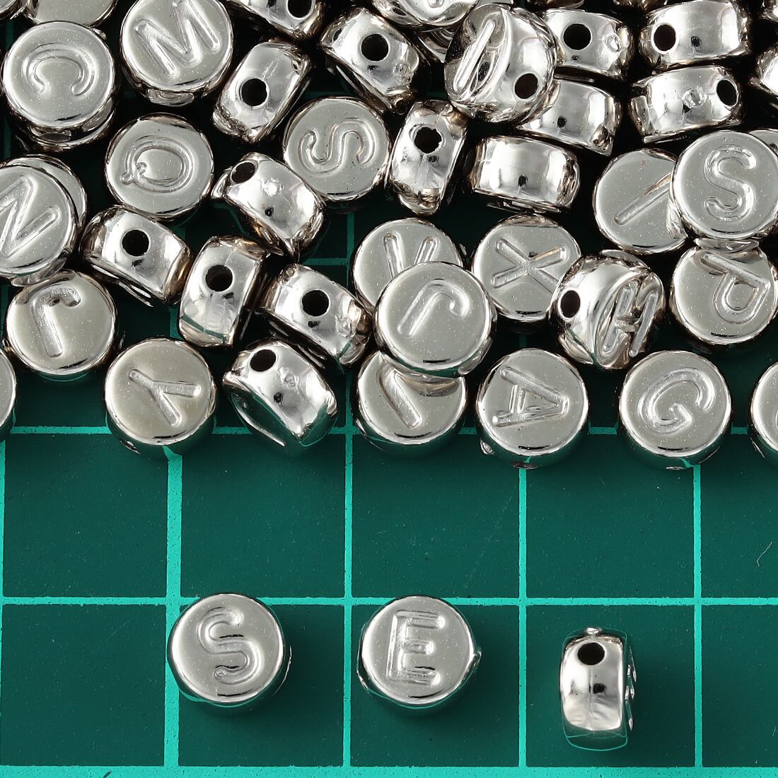 アルファベット ビーズ 丸 シルバー 銀古美 7mm 300個 アクセサリー パーツ ブレスレット ハンドメイド AP2352