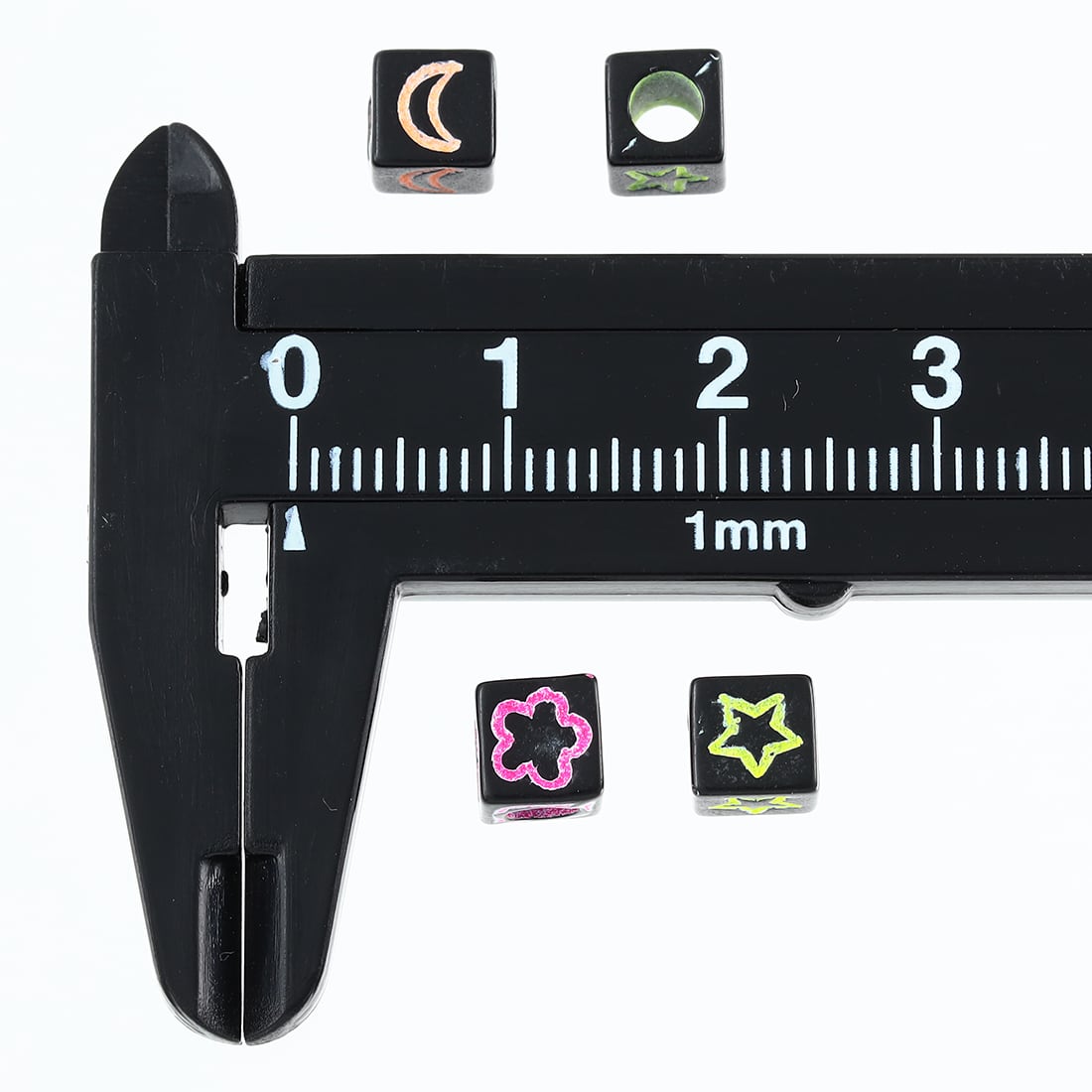 ビーズ 6mm キューブ ブラック 500個 模様有 ミックス アクセサリー パーツ ブレスレット ハンドメイド 手芸 AP2357