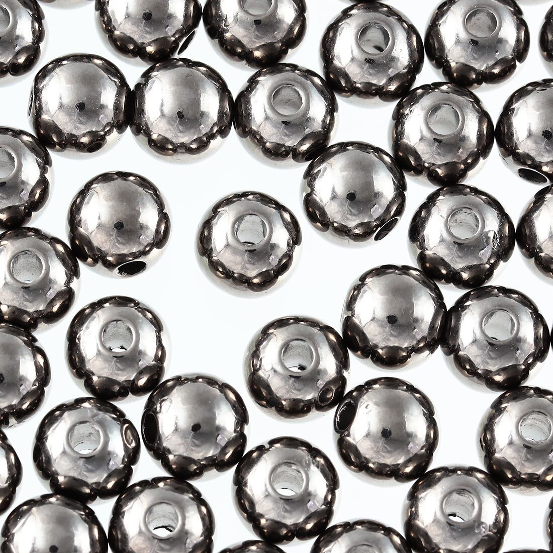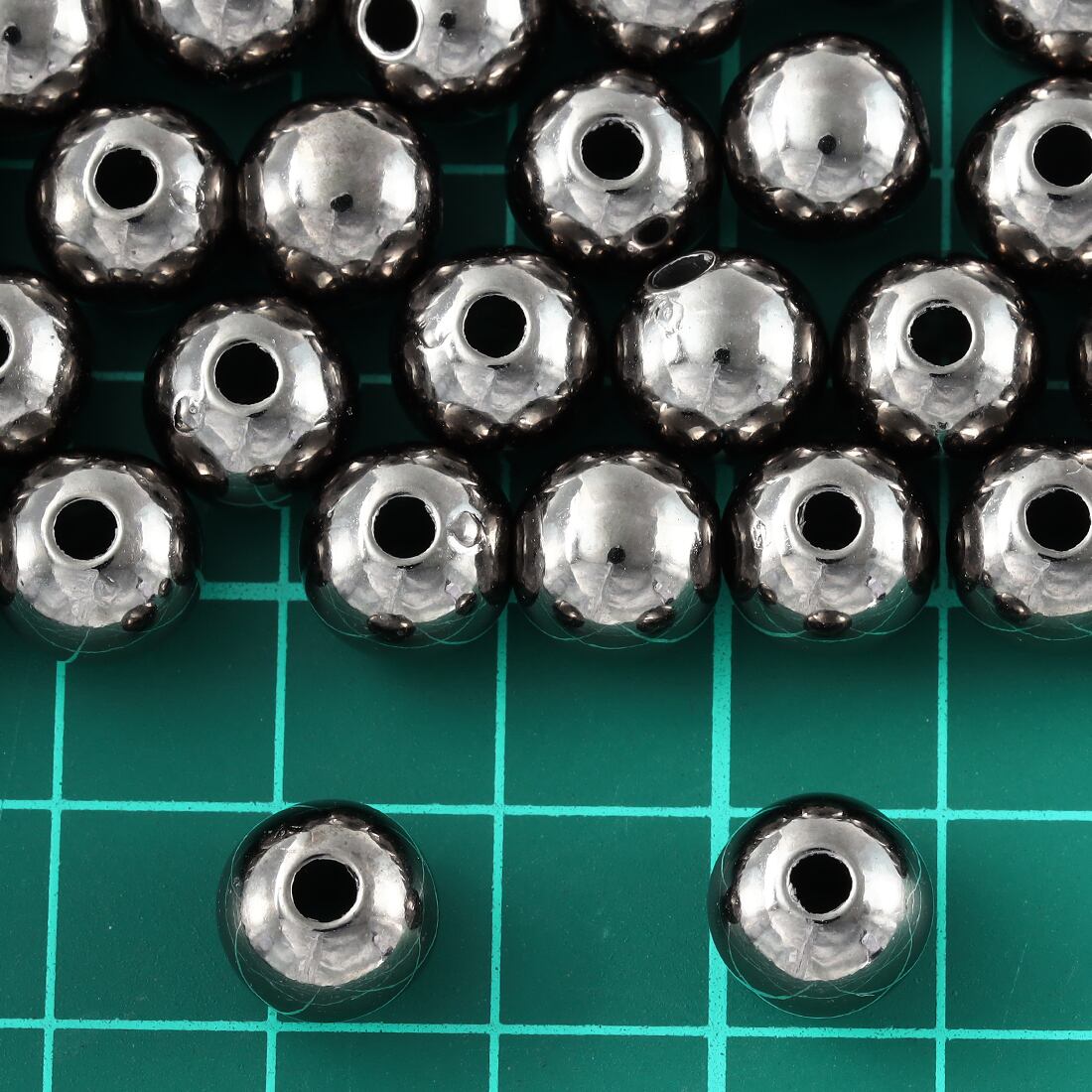 ビーズ 10mm 丸 ガンメタリック プラ製 100個 両穴有 軽い CCBプラスチック アクセサリー パーツ AP2380