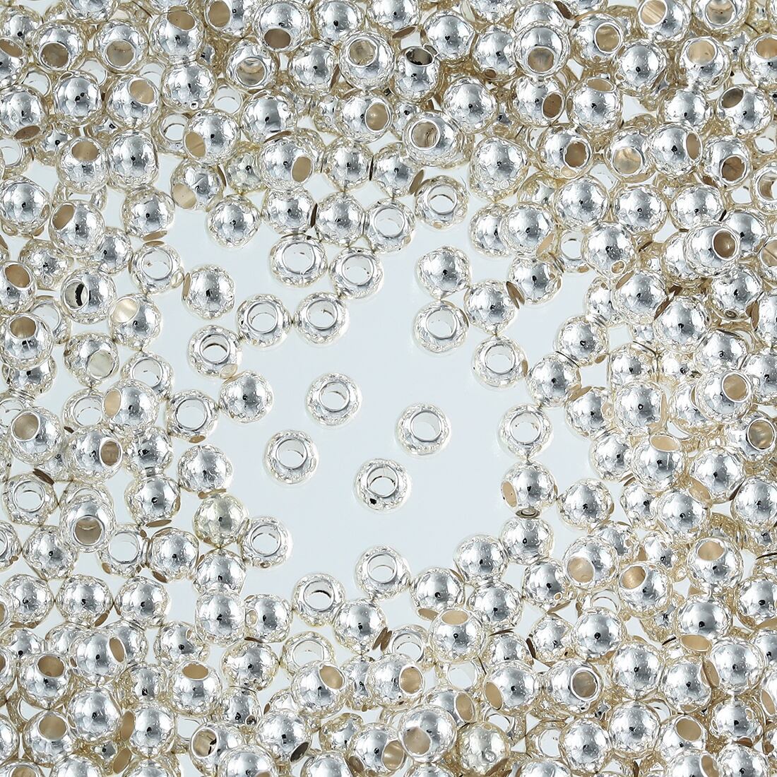 ビーズ 3mm 丸 シルバー 白銀 プラ製 1000個 両穴有 軽い CCBプラスチック アクセサリー パーツ AP2382