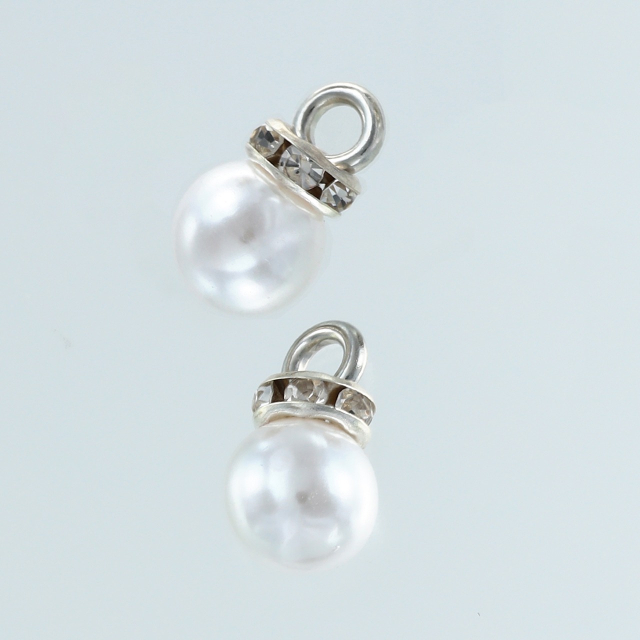 パールチャーム プラ製 丸 8mm 40個 ロンデル カン付き ホワイト シルバー ハンドメイド アクセサリー パーツ AP2390
