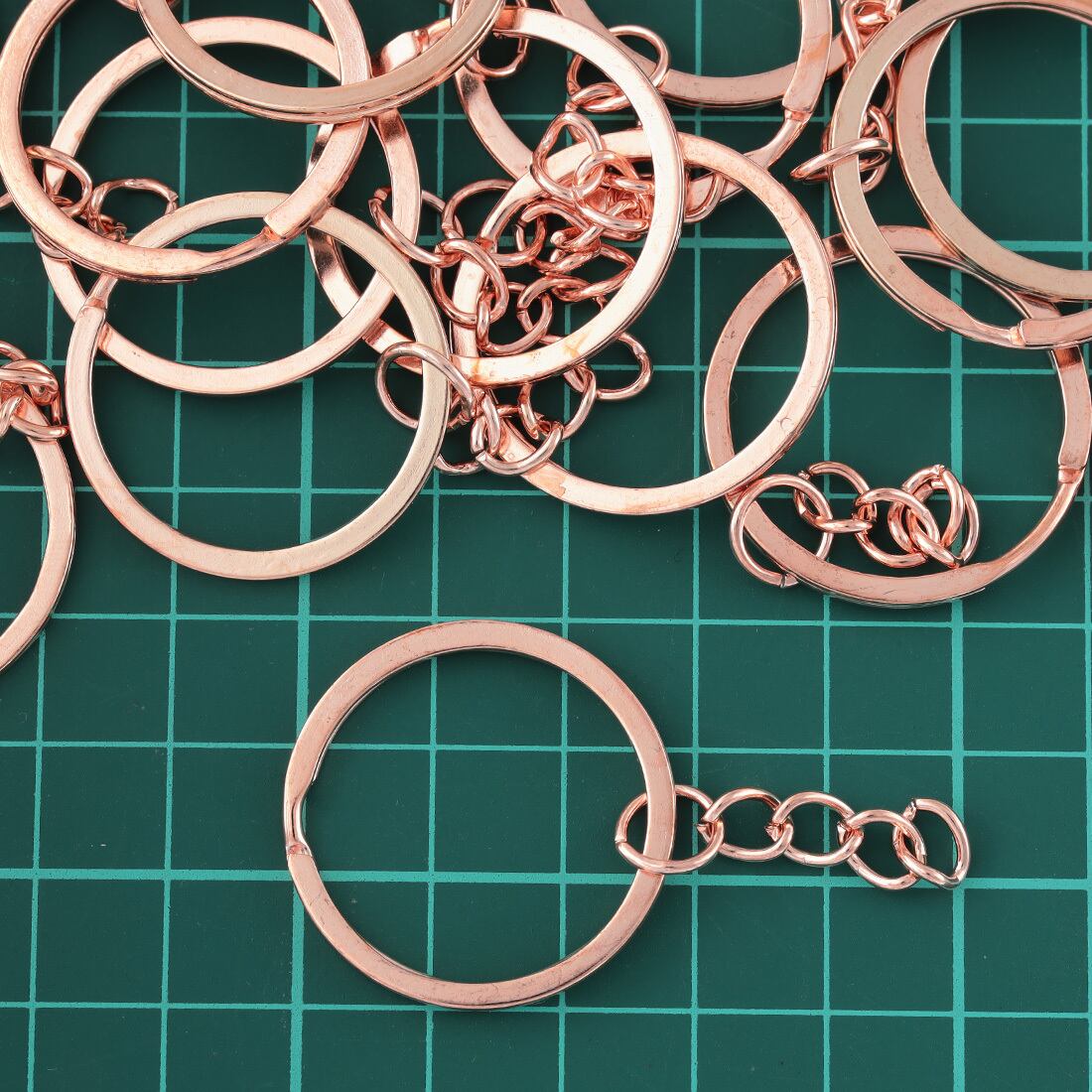 キーホルダー 金具 30mm 50個 ピンクゴールド 平キーリング パーツ 丸カン チェーン付き 二重リング アクセサリー 手芸 AP2442