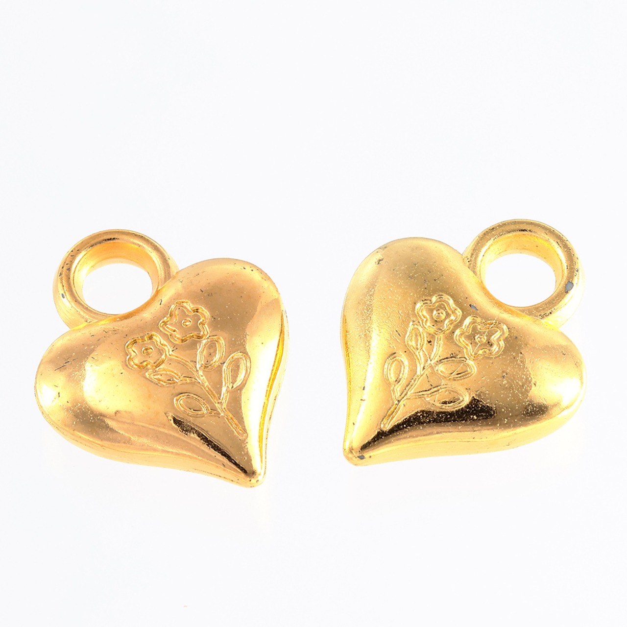 チャーム ハート ゴールド 小さめ アンティーク 模様有 40個 プラ製 カン付き アクセサリー パーツ 手芸 AP2488